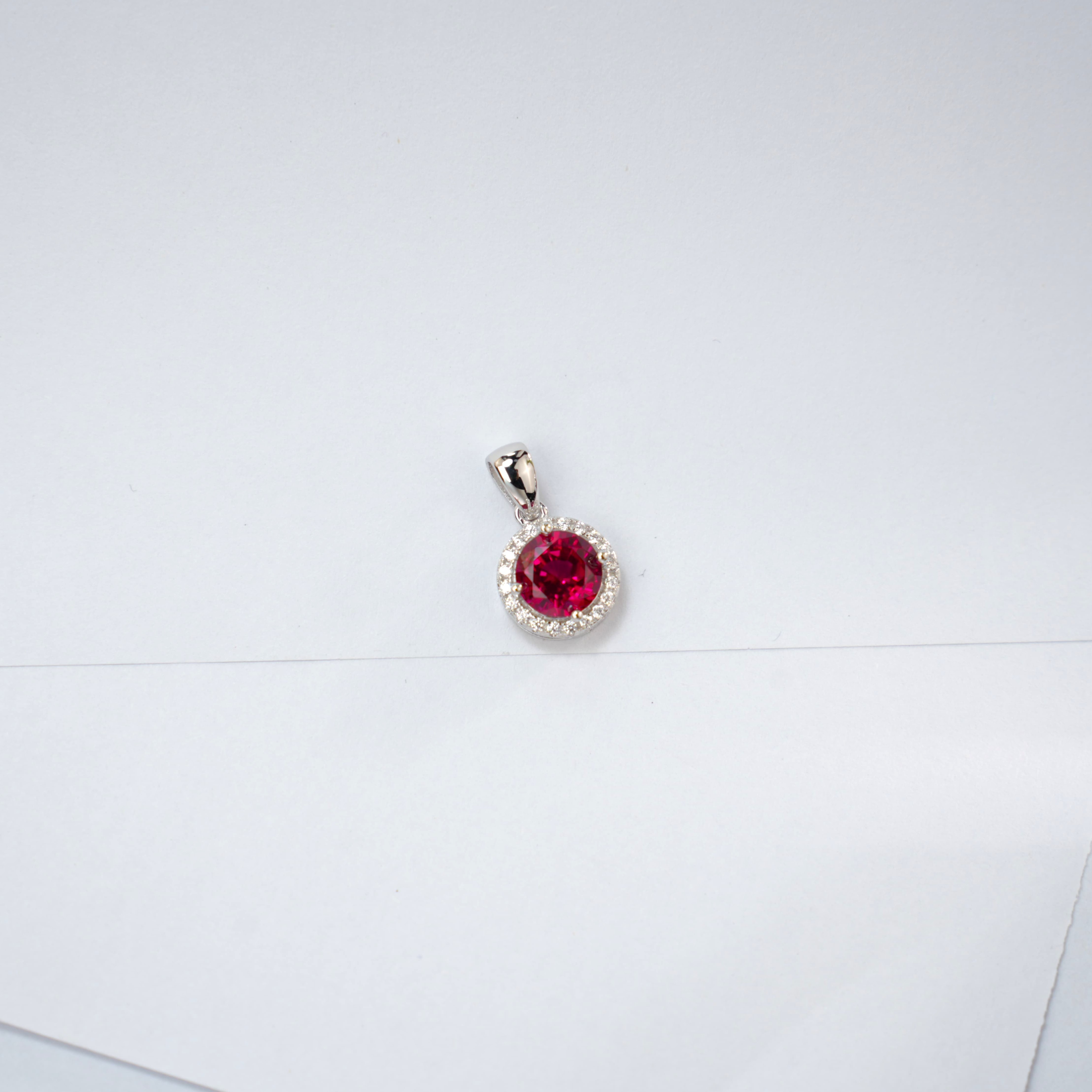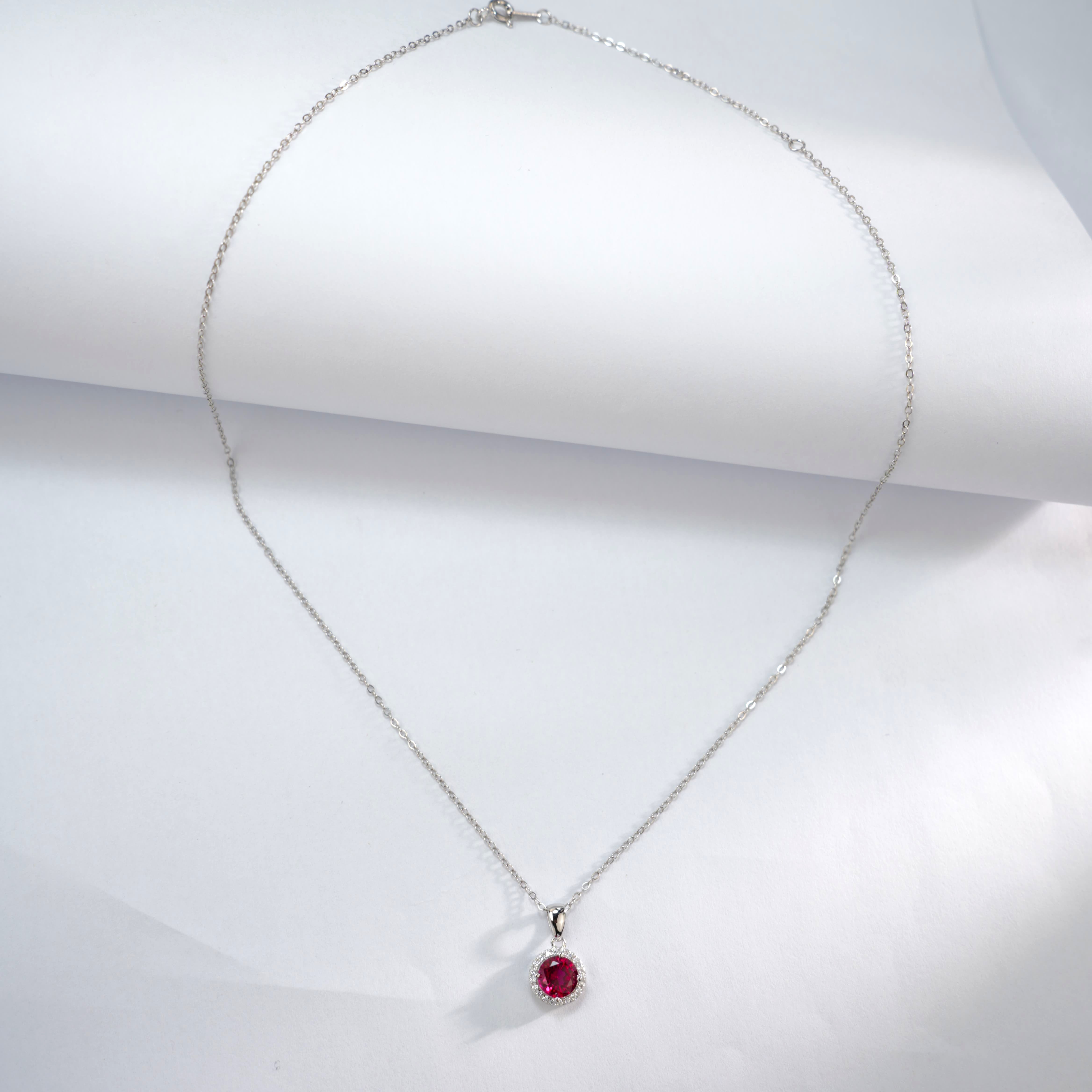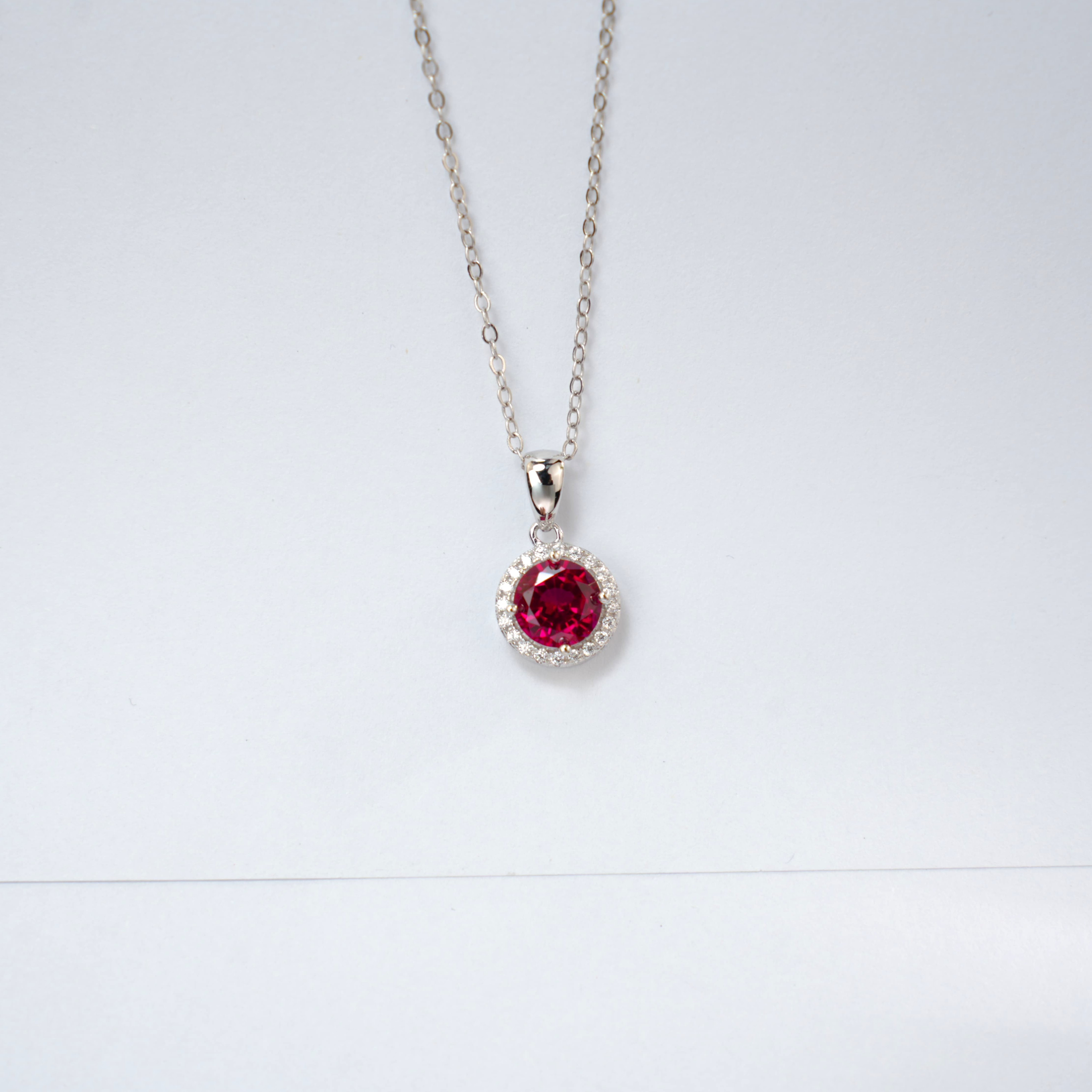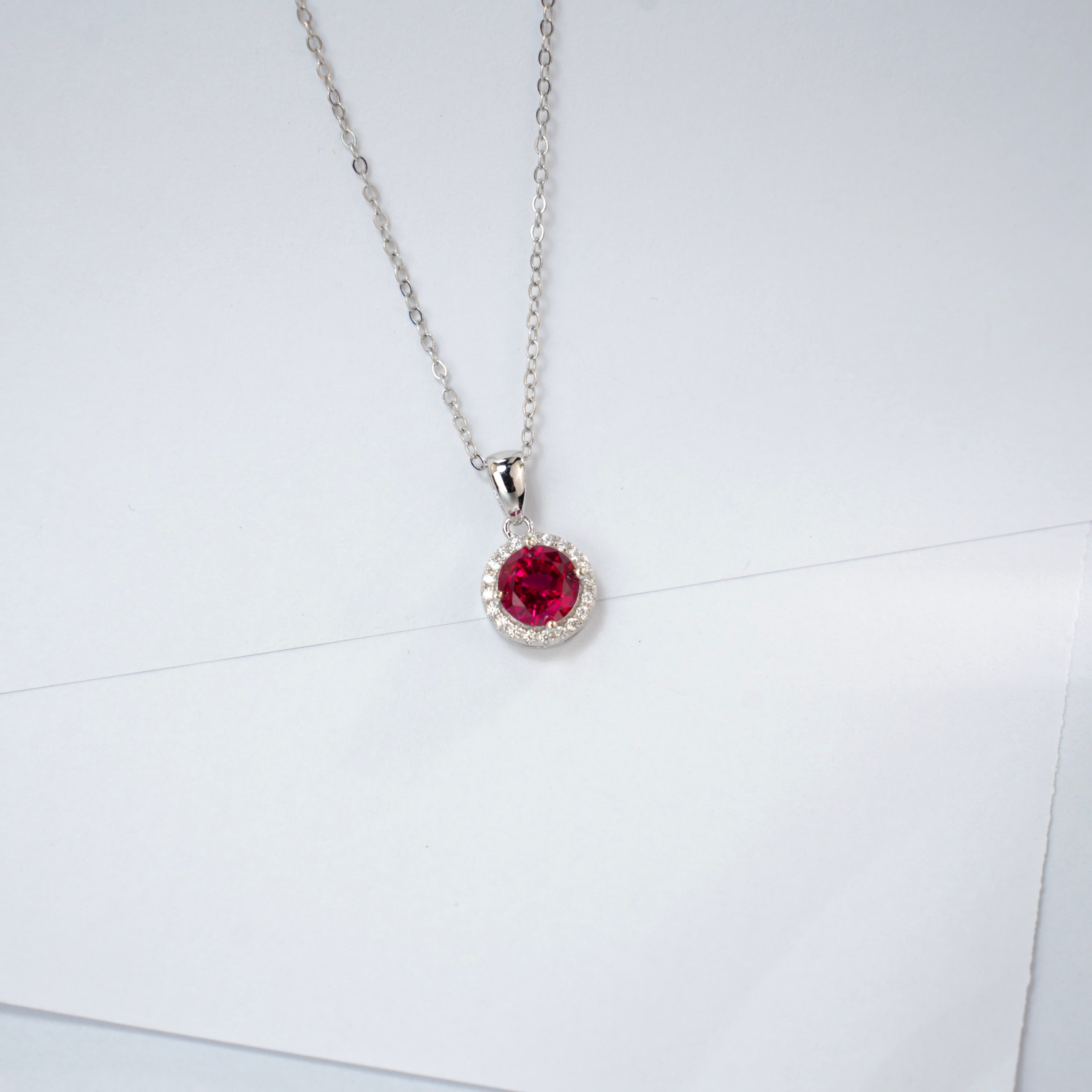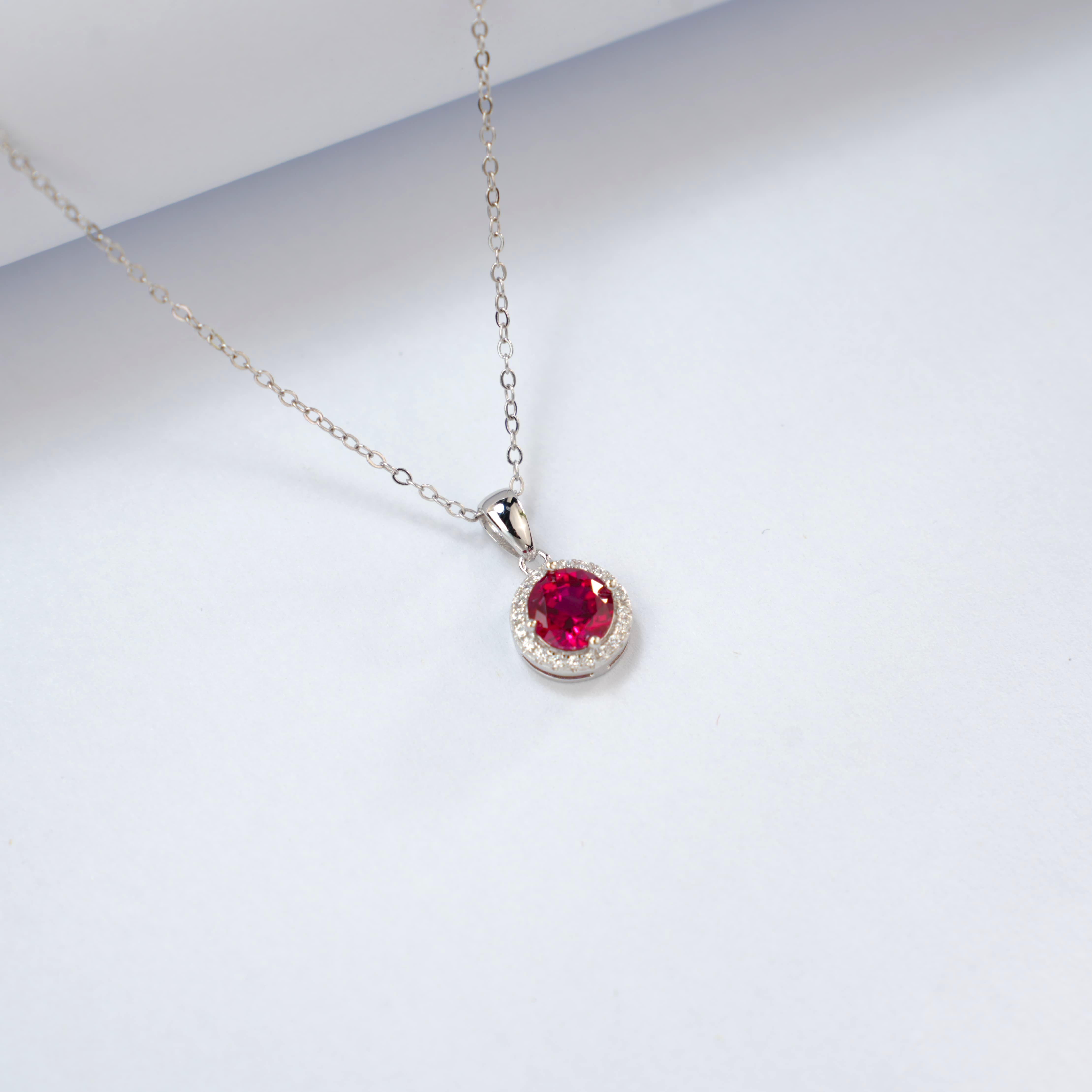 925 银培育红宝圆钻围镶项链
