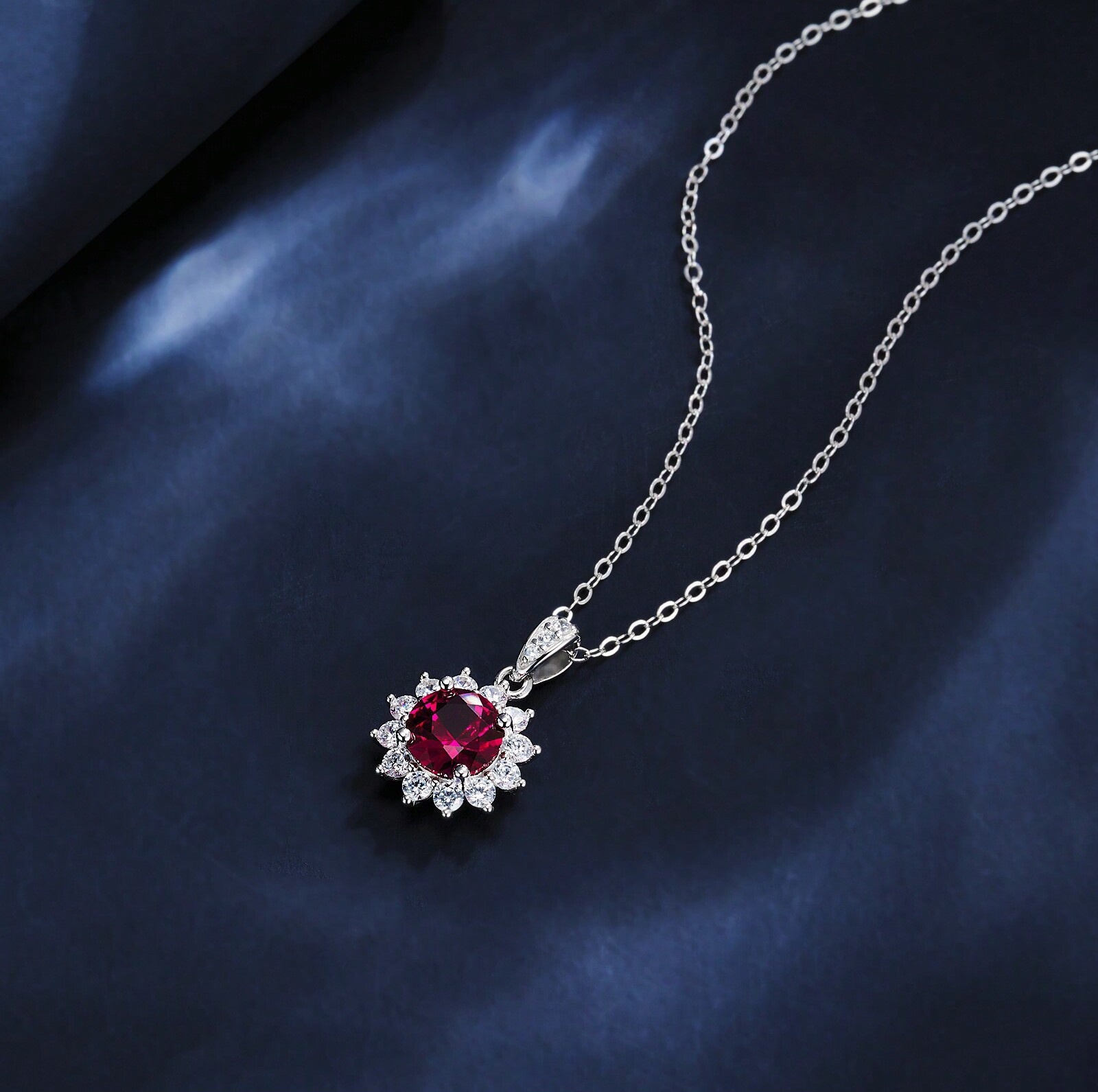 925 银培育红宝太阳花项链(ZHF-P00117R)