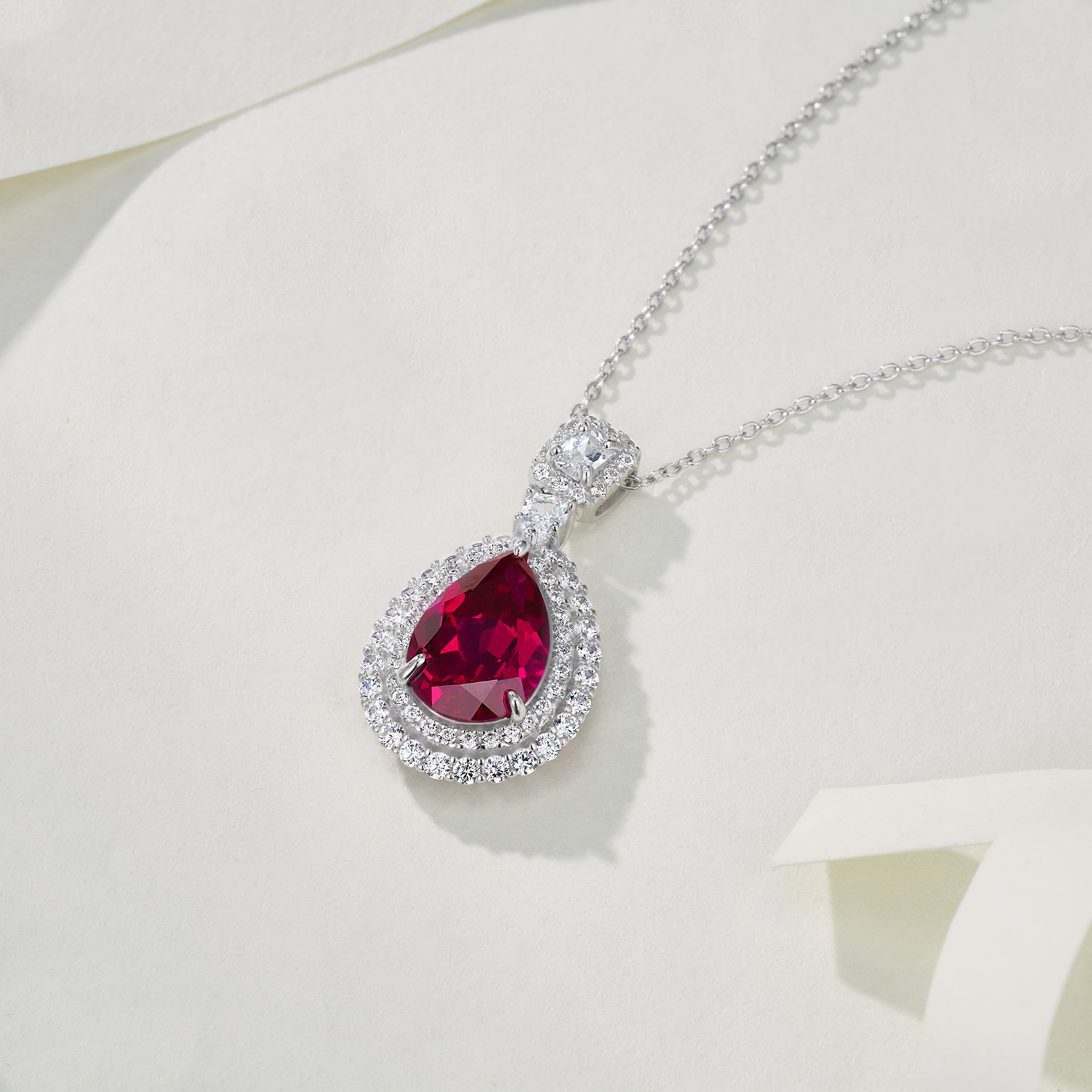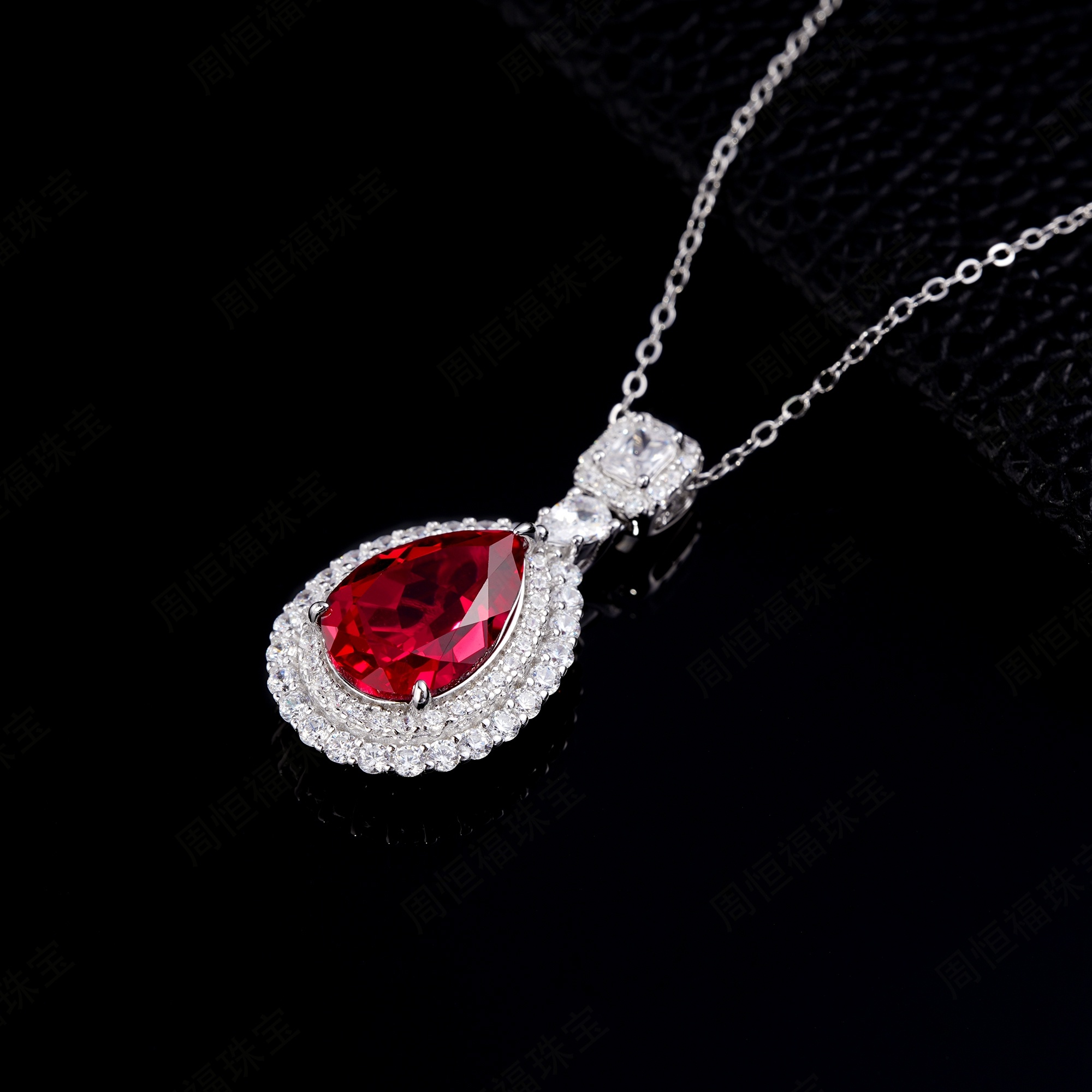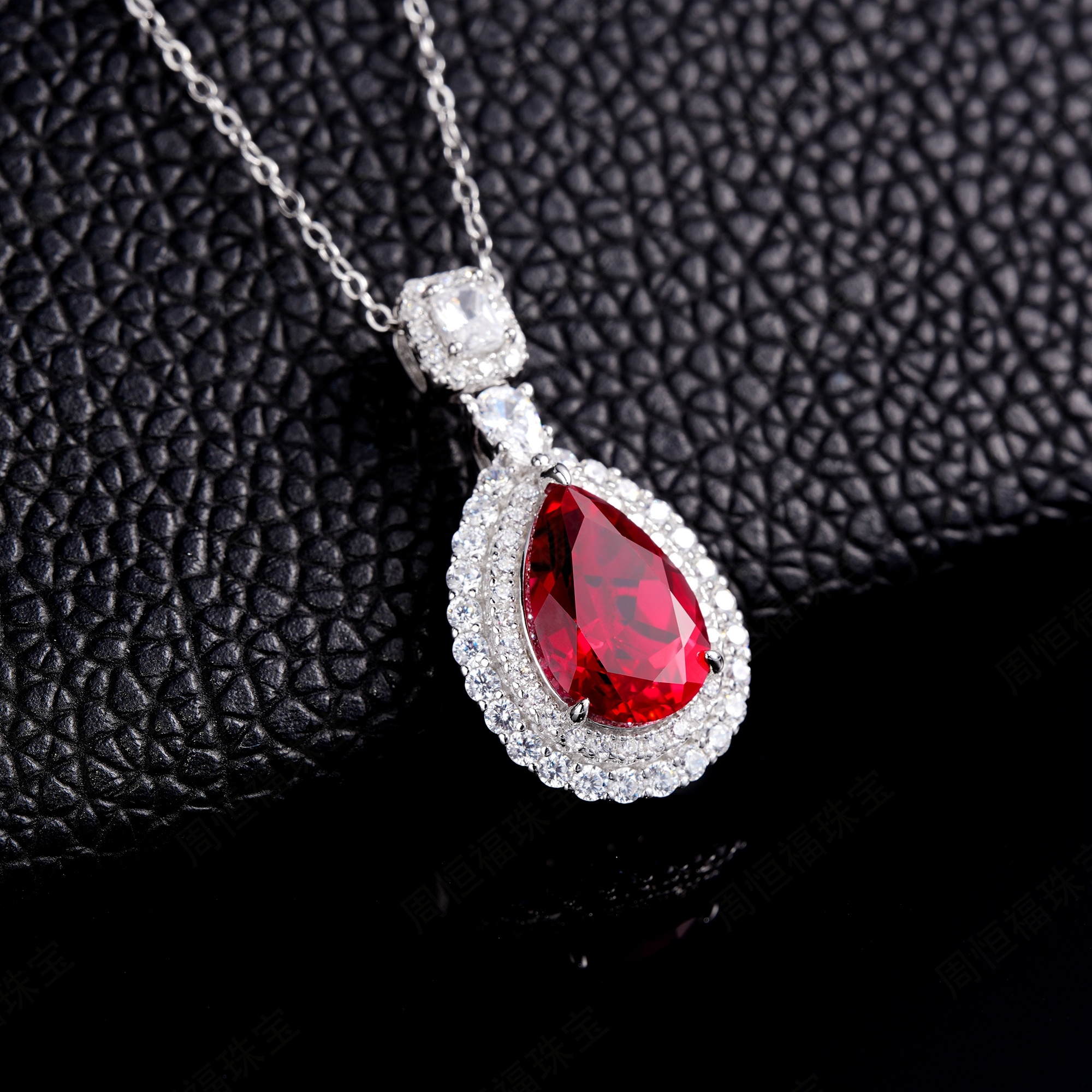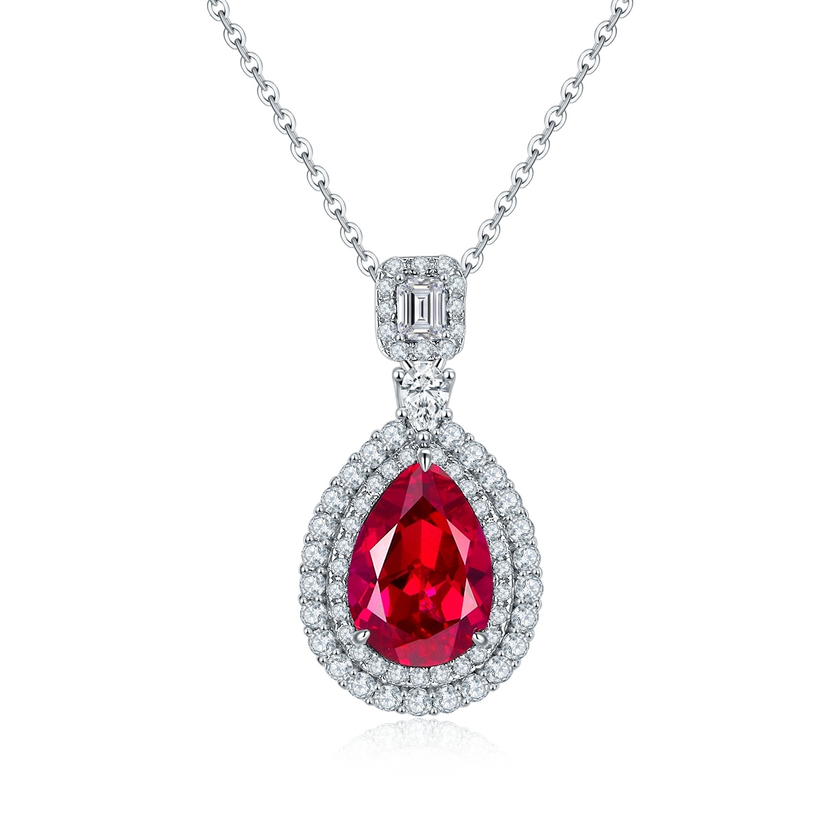 925 银培育红宝水滴满钻项链(ZHF00406R)