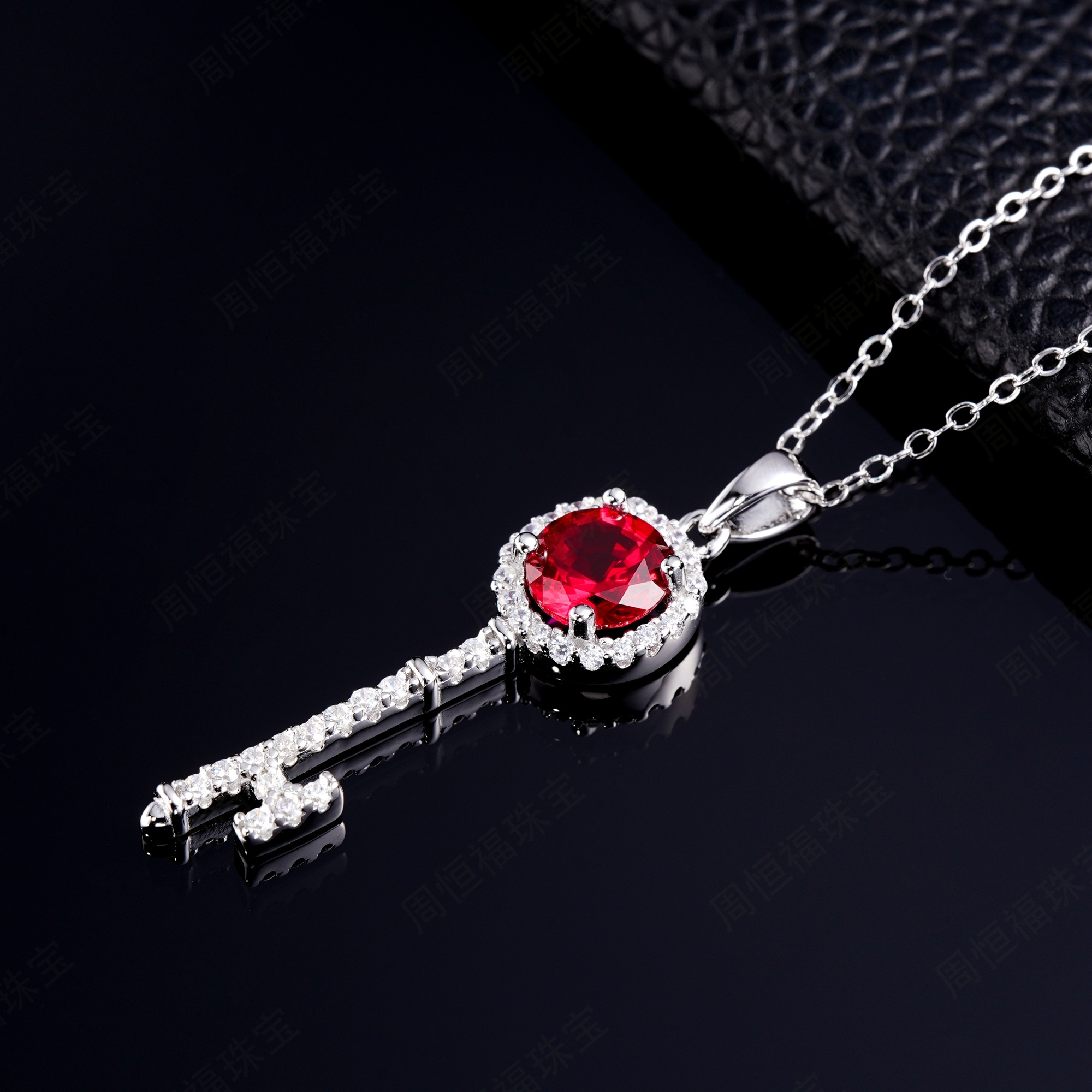 925 银培育红宝钥匙项链(ZHF-P1720R)