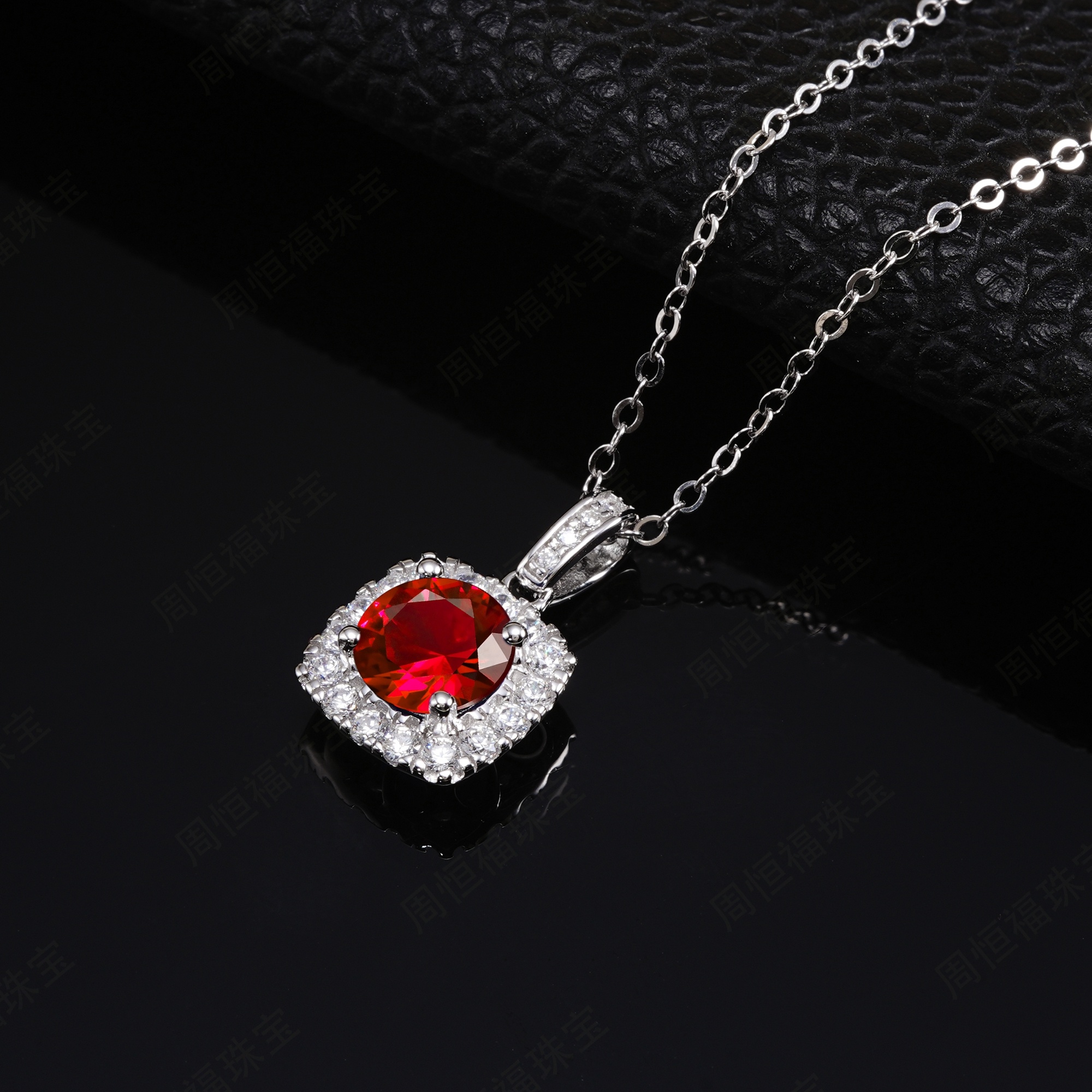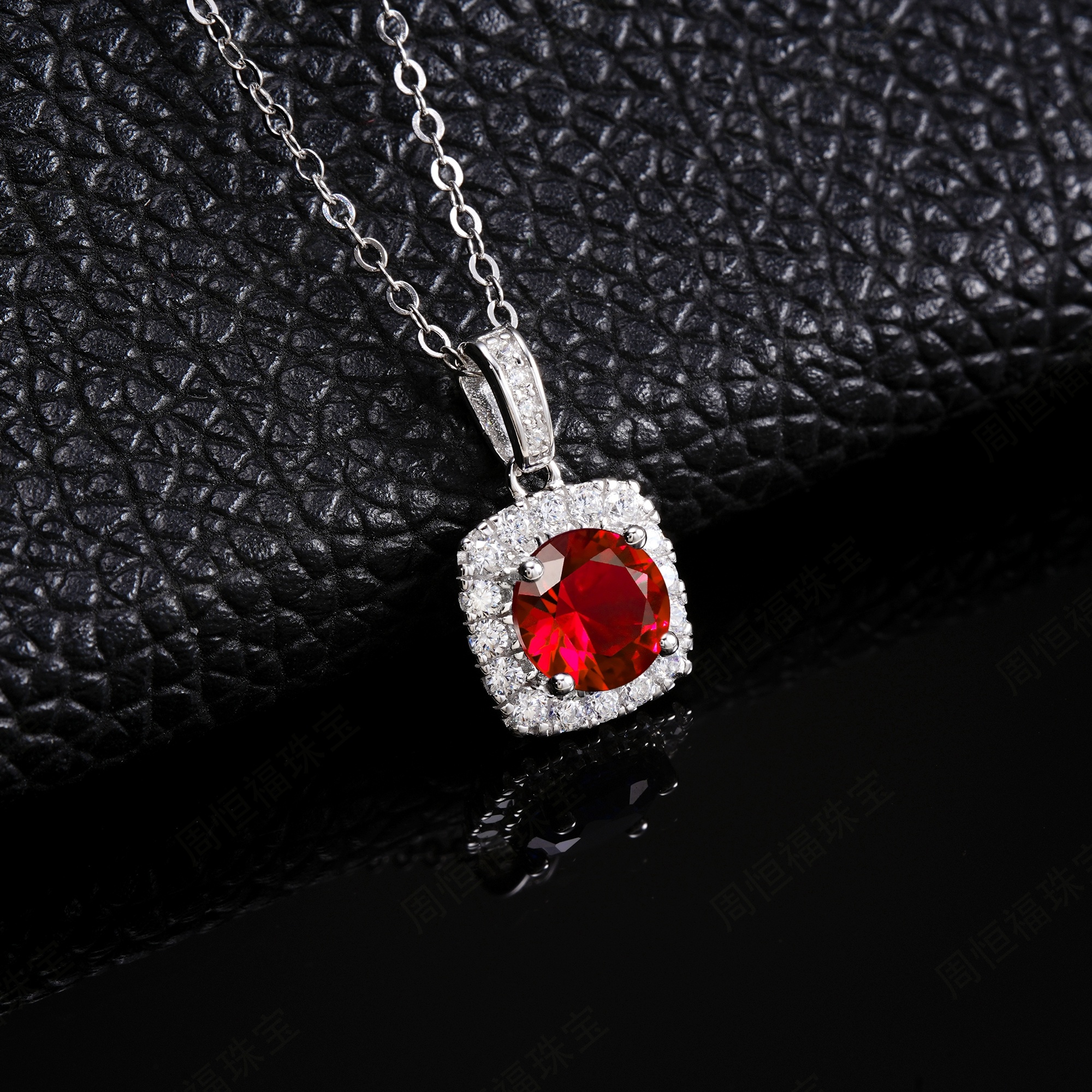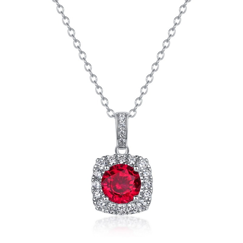 925 银培育红宝方钻围镶项链(ZHF-P1711R)