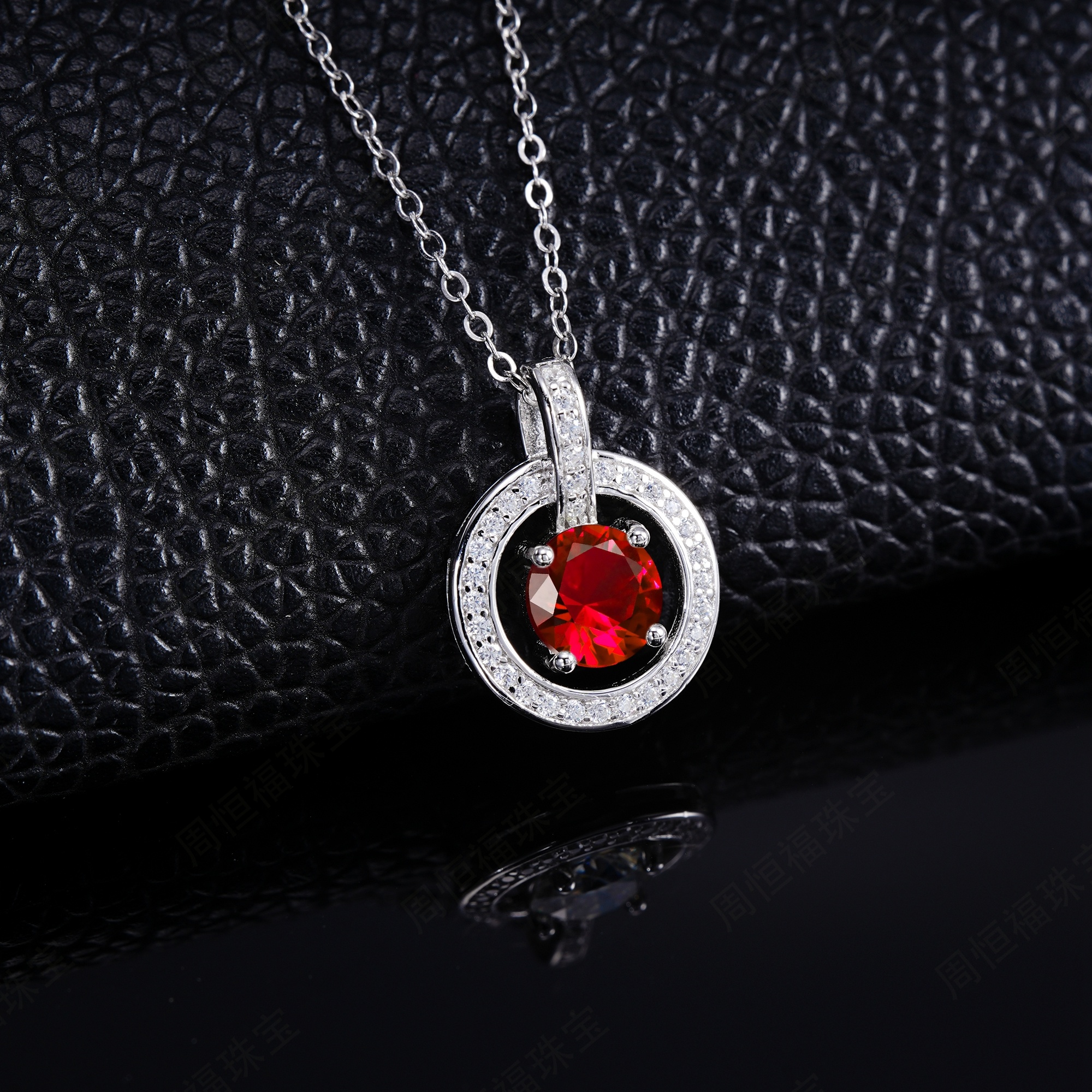 925 银培育红宝圆环项链(ZHF-P1750R)