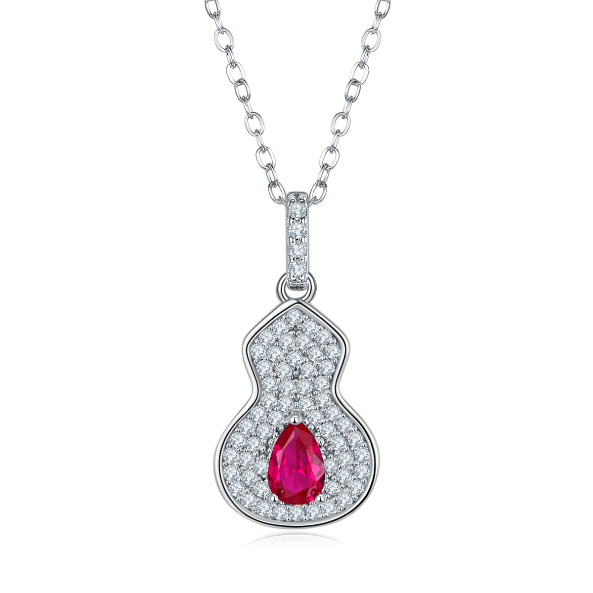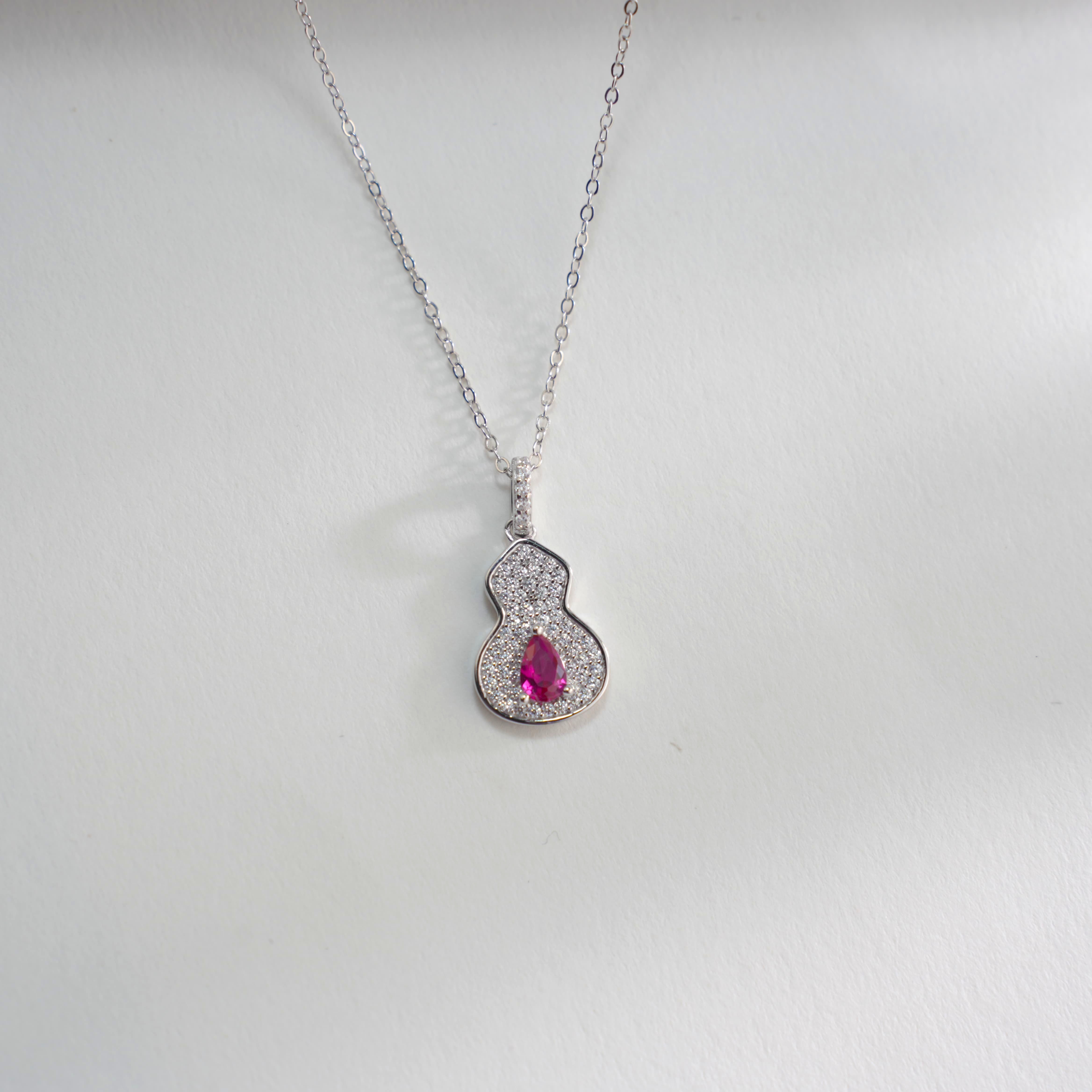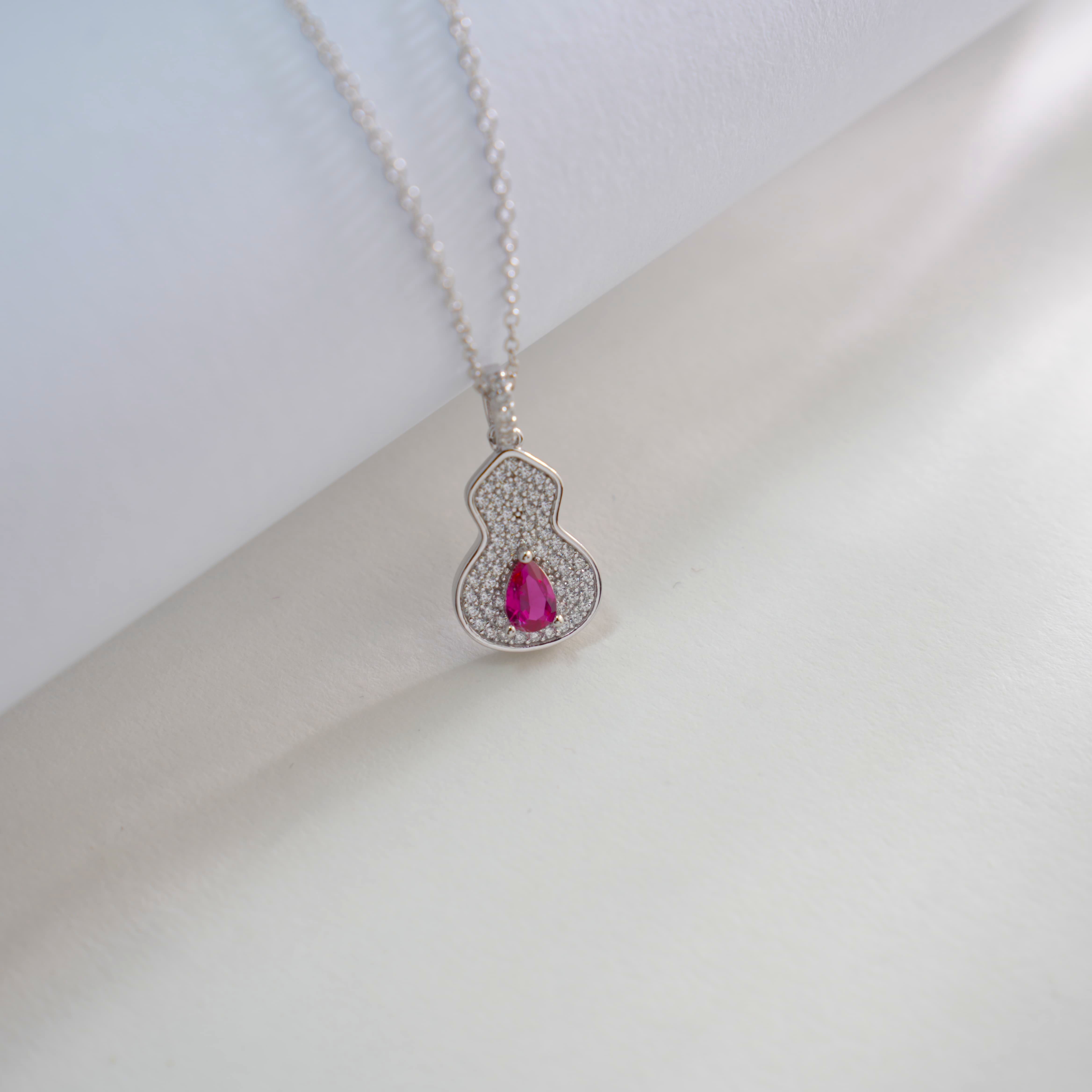 葫芦造型设计充满吉祥寓意,红宝镶嵌于葫芦中心,钻饰点缀葫芦轮廓,风格精致且传递出 “福禄双全” 的美好期许。红宝色泽明艳(4×6MM/0.42ct),与银质葫芦的搭配尽显典雅质感,日常佩戴时,无论是搭配国风服饰,还是简约的日常穿搭,都能为造型注入一份吉祥的韵味,是展现对传统寓意追求、传递典雅风格的精致配饰。