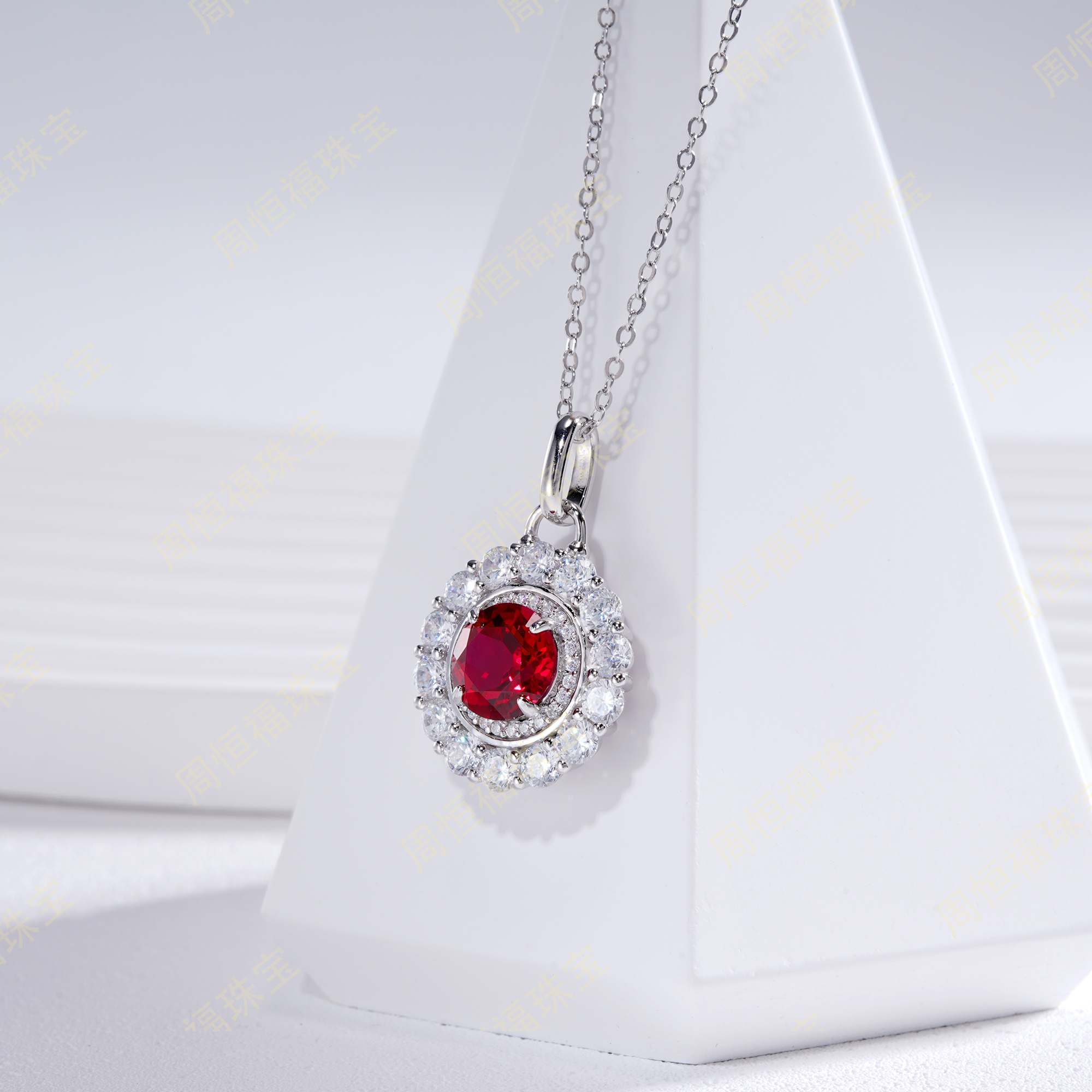 培育红宝圆环满钻项链