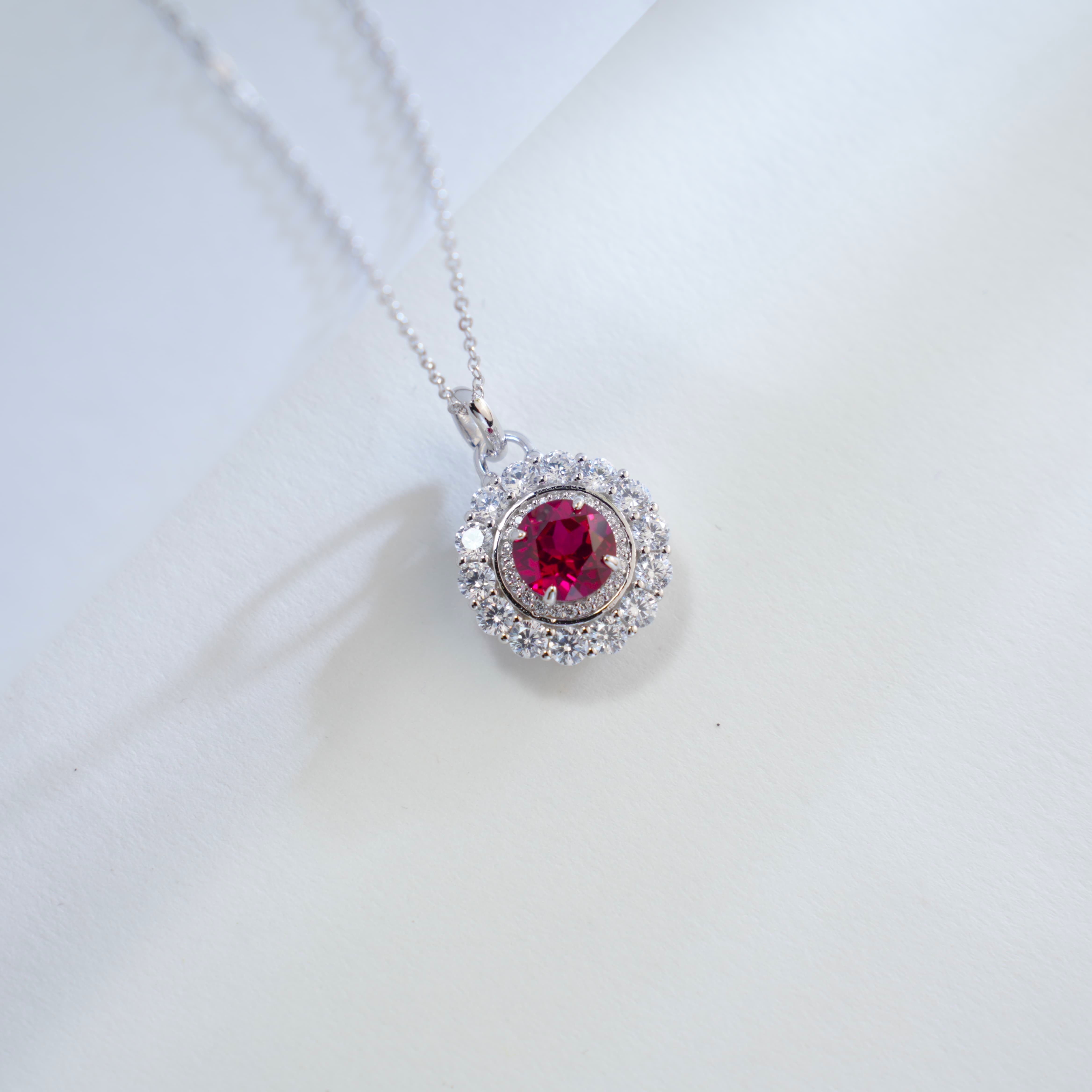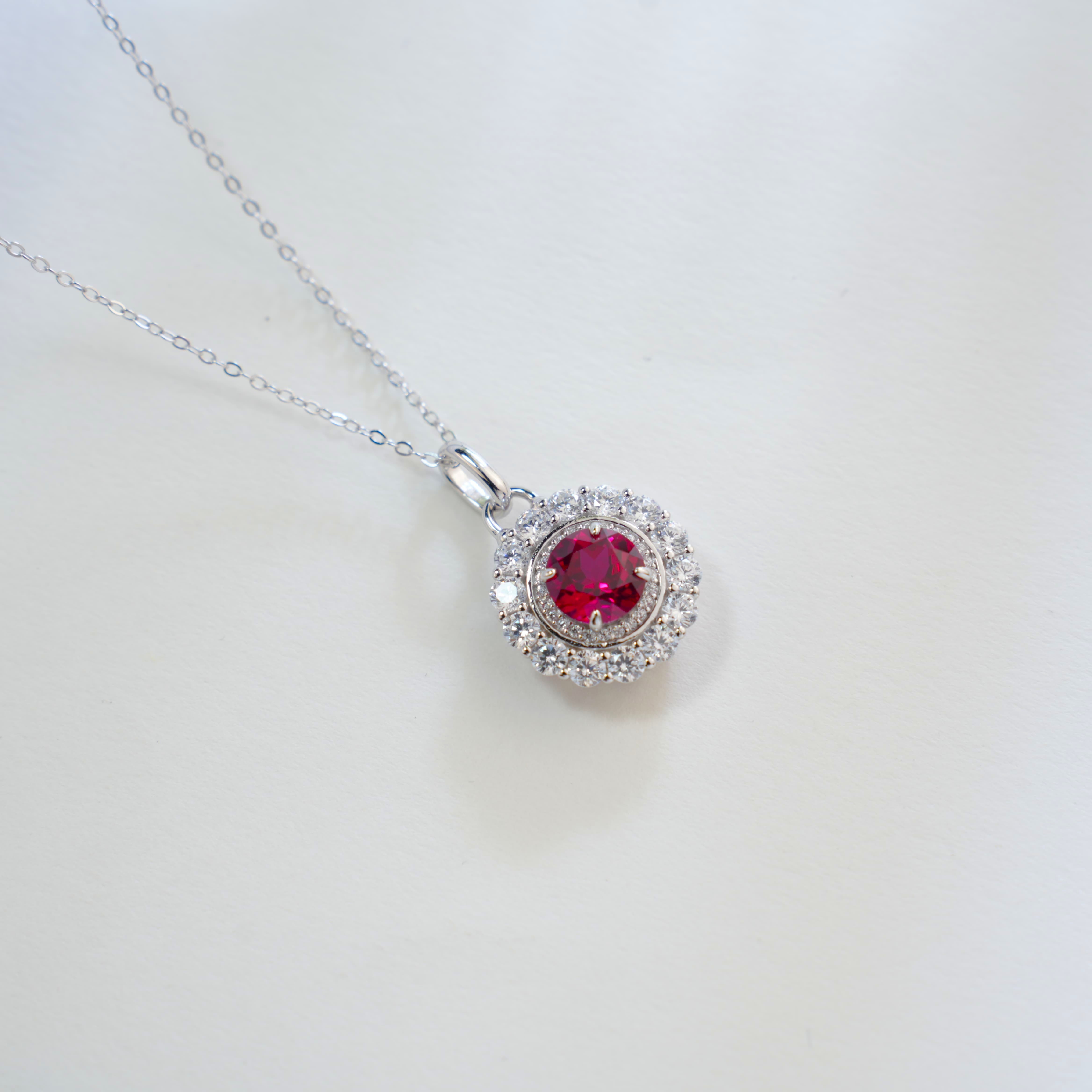 圆环造型搭配满钻双层围镶设计,红宝主石(8×8MM/2.46g)色泽浓郁明艳,工艺奢华且充分凸显宝石的璀璨火彩。项链整体设计精致大气,日常佩戴时,无论是搭配优雅的礼服,还是简约的职场装,都能轻松提升造型的奢华感与精致度,是展现高贵品味与对奢华珠宝追求的优质配饰。
