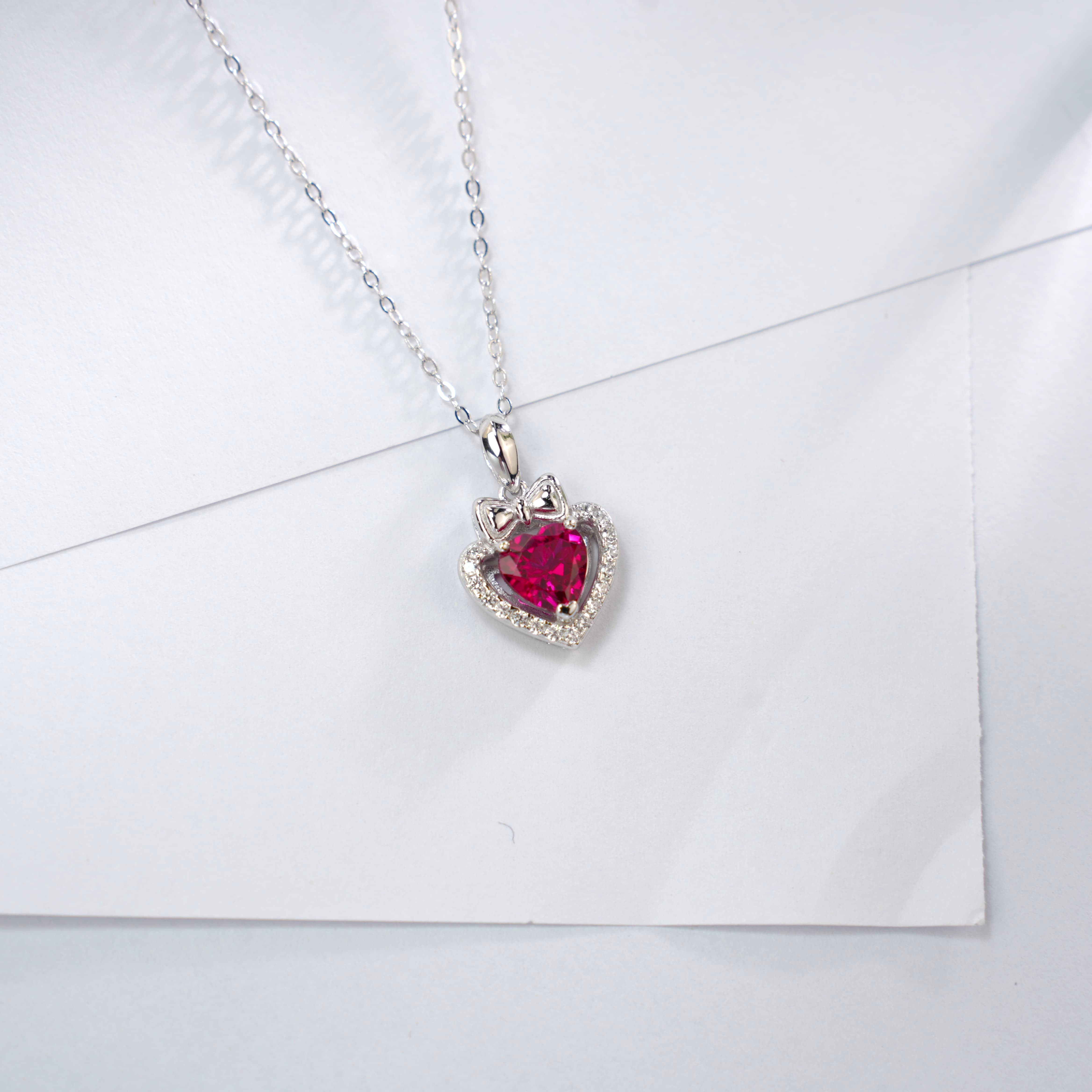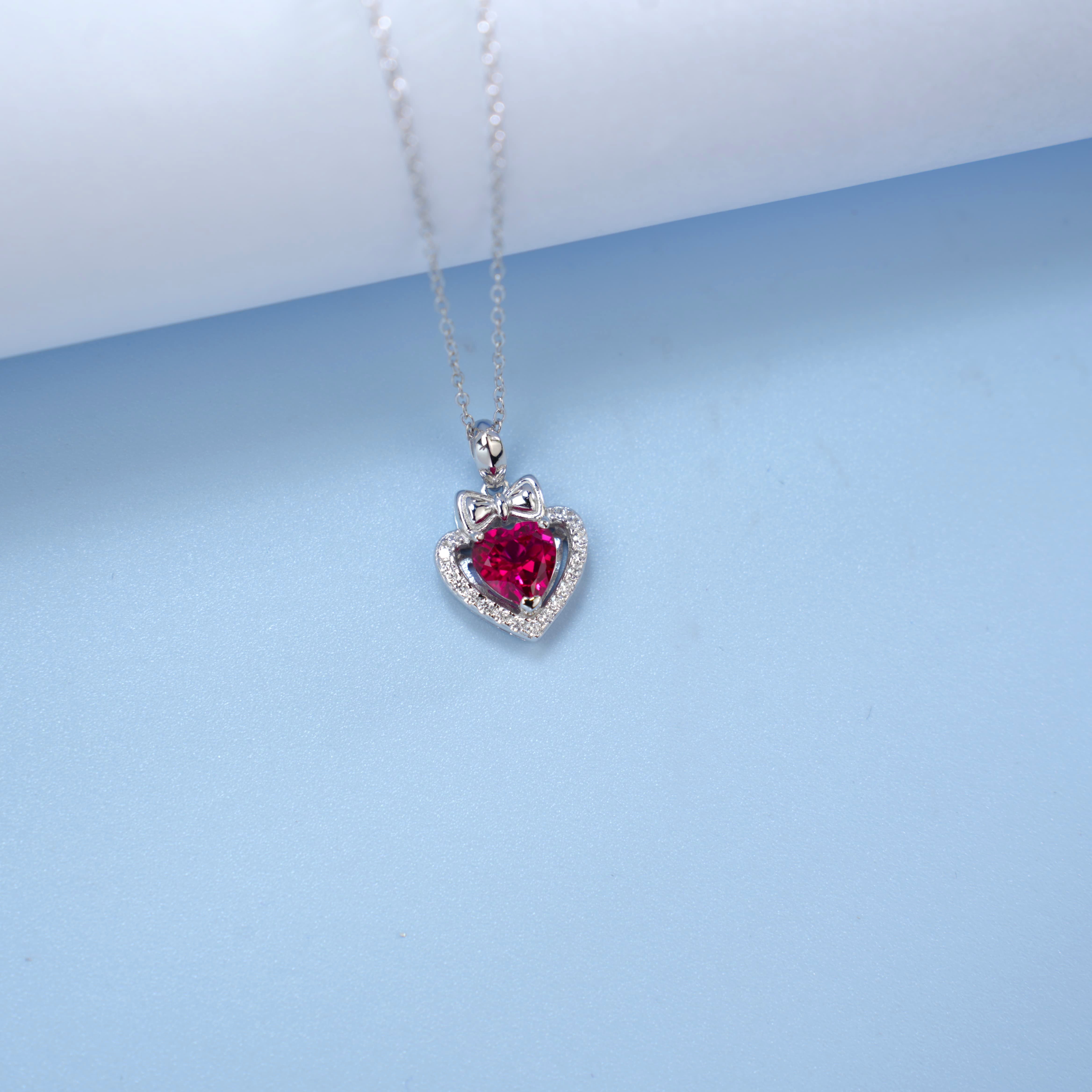 S925 银培育红宝蝴蝶结爱心项链(ZHF-P1690R)