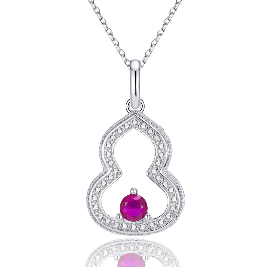 S925 银培育红宝葫芦项链(ZHF-P1644R)
