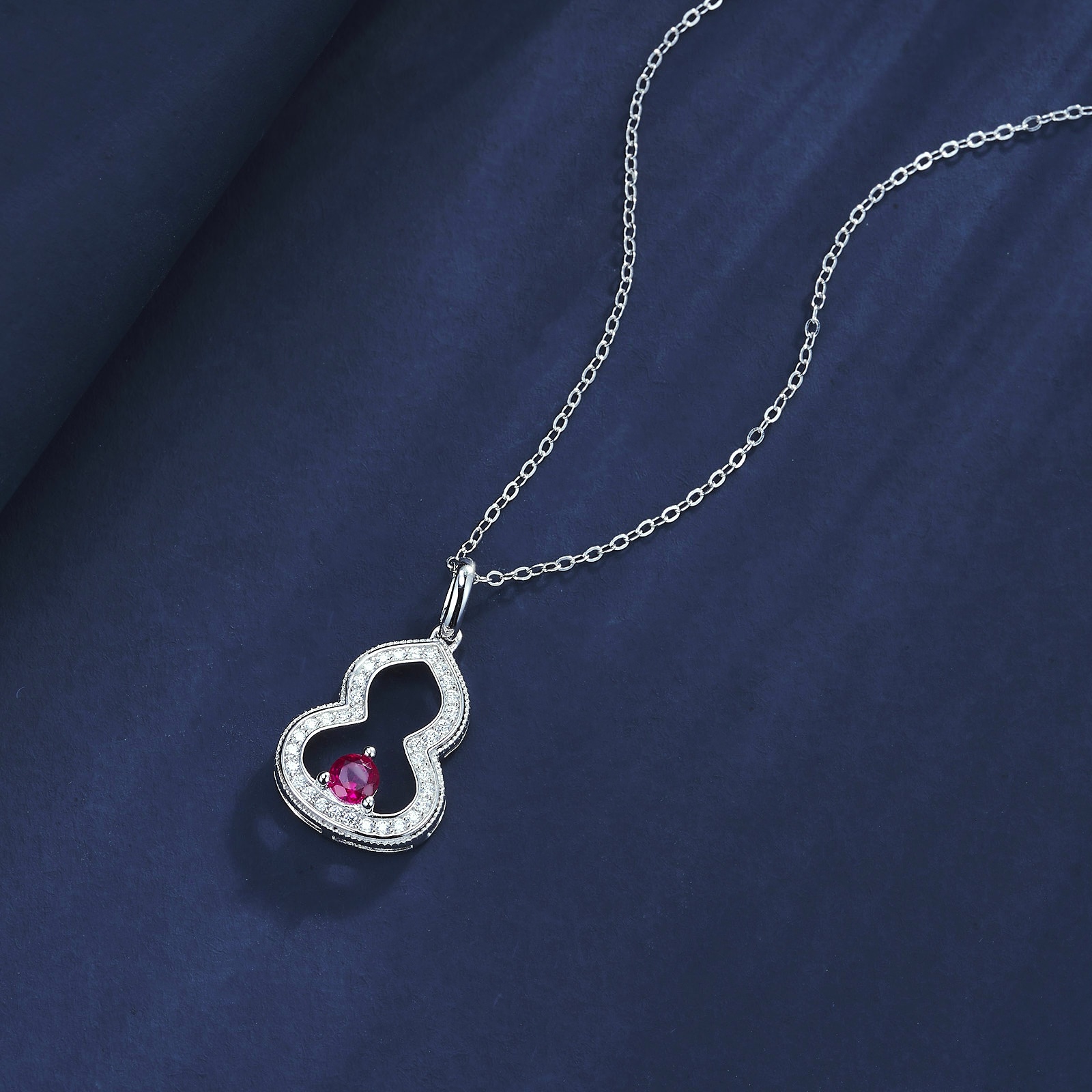 葫芦造型设计蕴含 “福禄” 吉祥寓意,红宝主石(4×4)镶嵌于葫芦中心,钻饰环绕葫芦轮廓,风格精致且充满传统韵味。红宝色泽明艳,与银质葫芦的搭配尽显灵动质感,日常佩戴时,无论是搭配国风服饰,还是简约的日常穿搭,都能为造型注入一份吉祥的精致气息,是展现对传统寓意追求、传递精致风格的高性价比配饰。