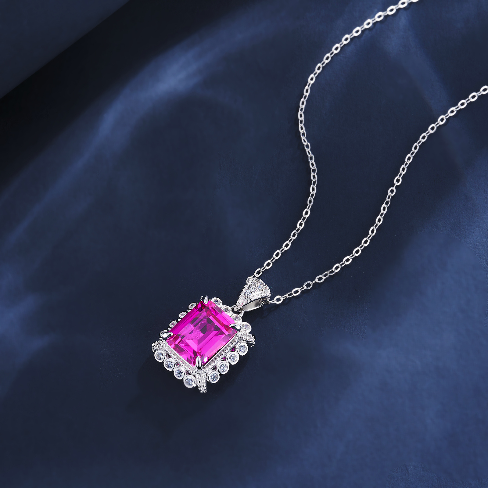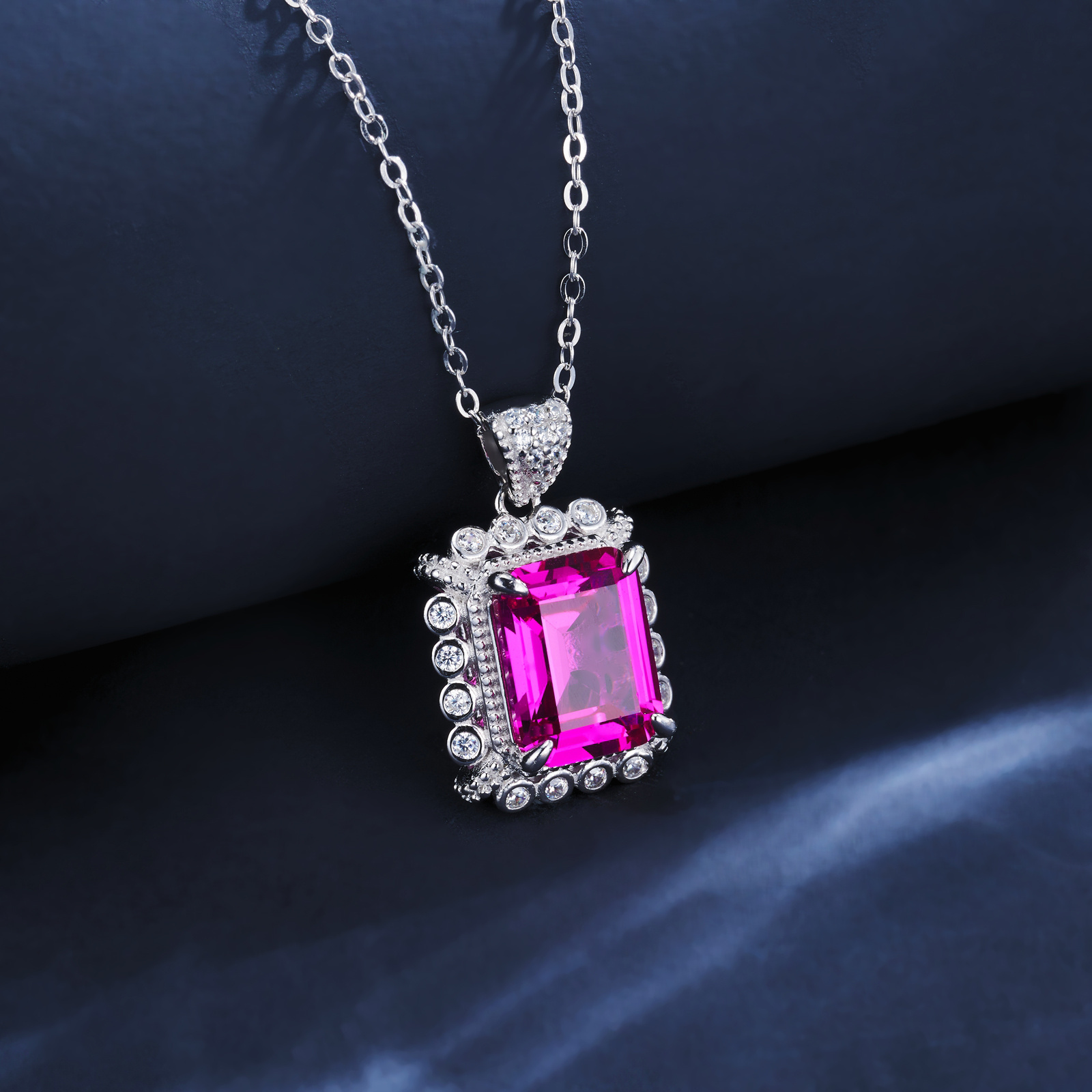 S925 银培育红宝方形奢华项链(ZHF-P1629R)