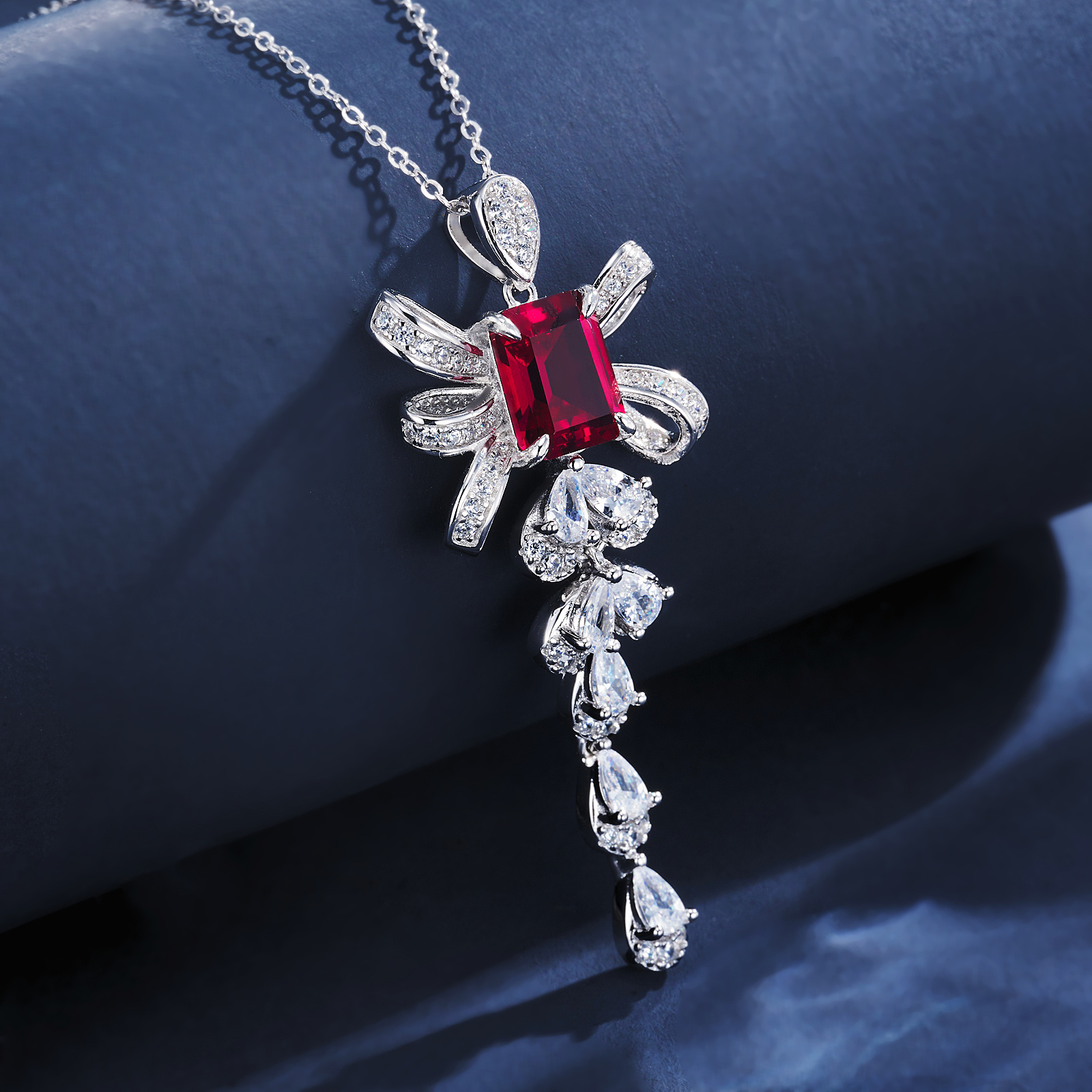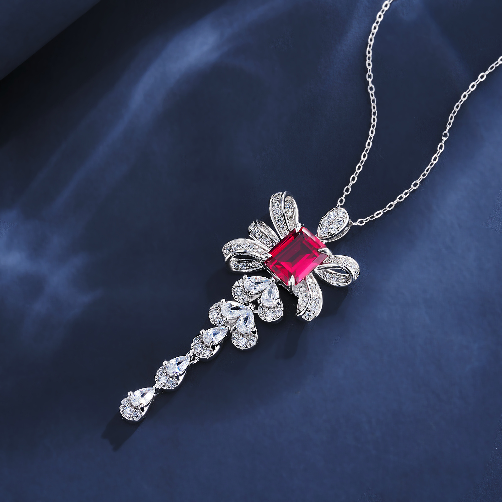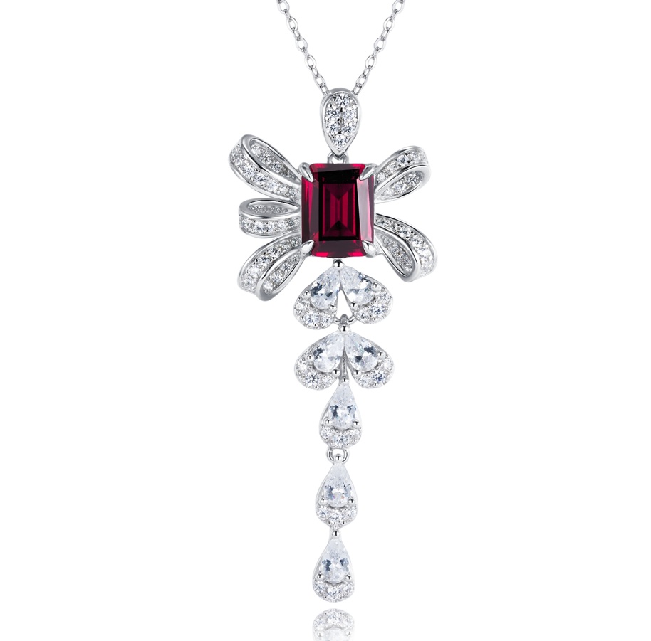 925 银培育红宝蝴蝶流苏项链(ZHF-P1532R)