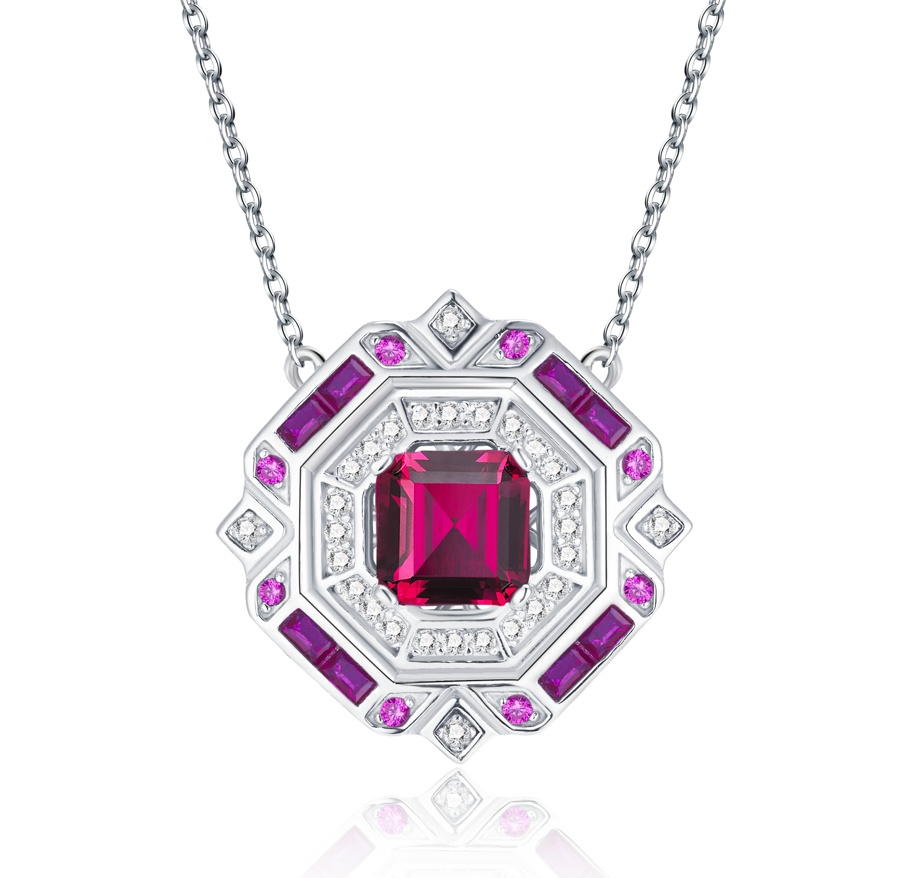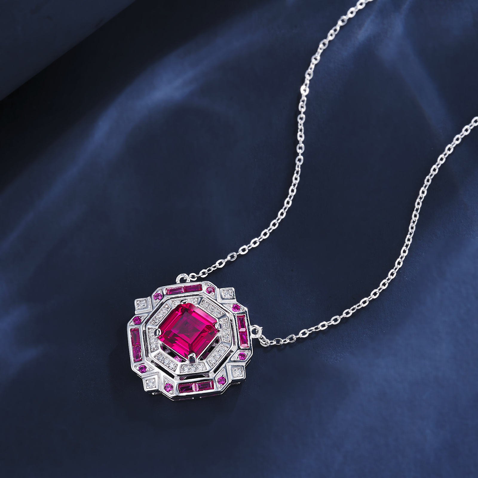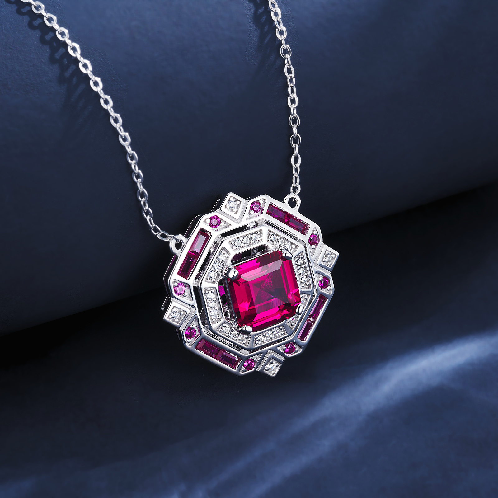 925 银培育红宝几何奢华项链(ZHF-P1636R)