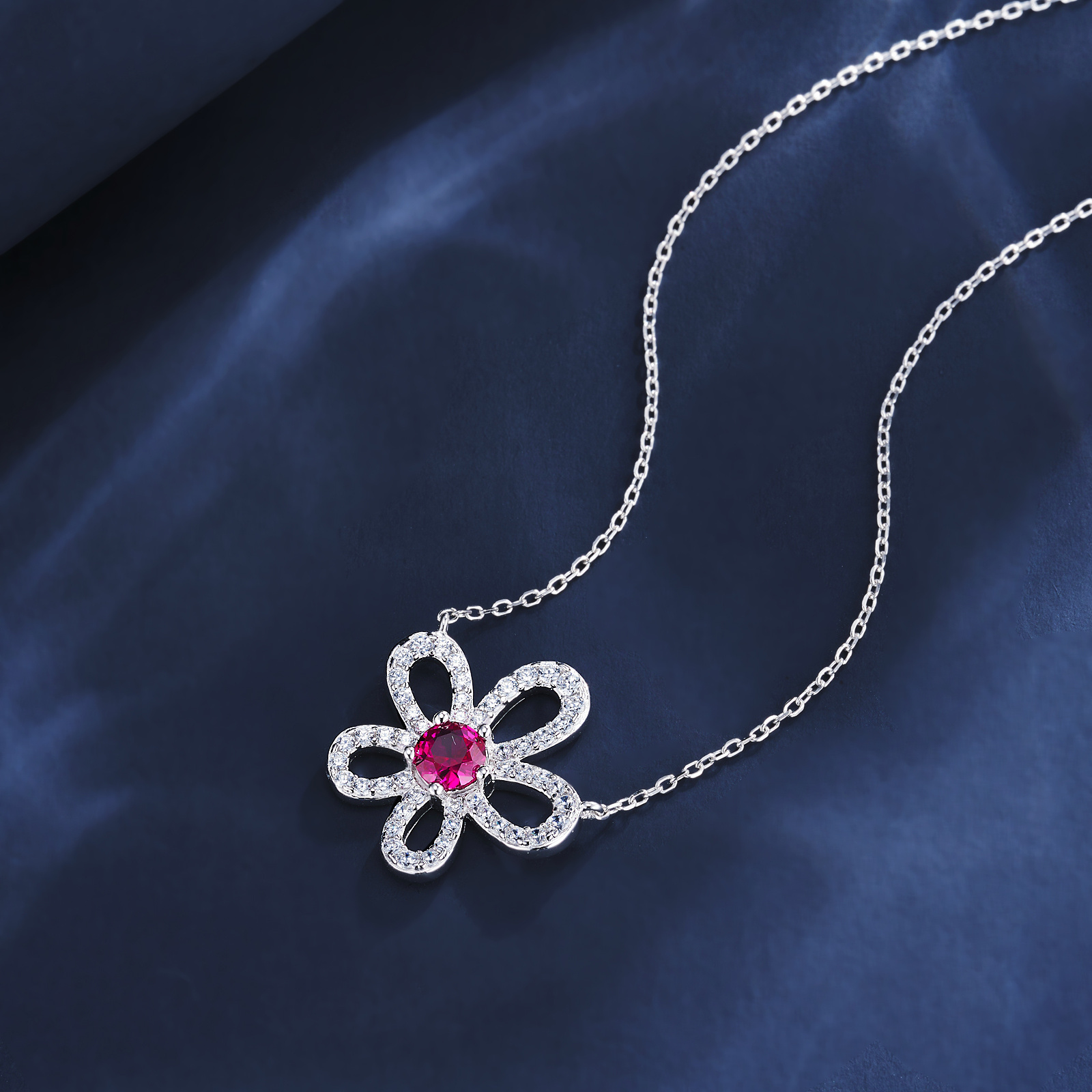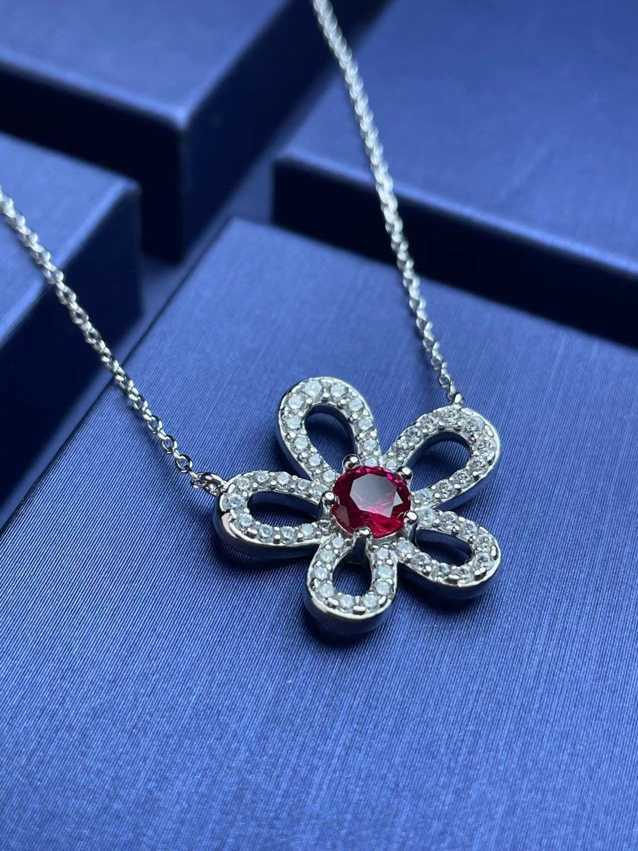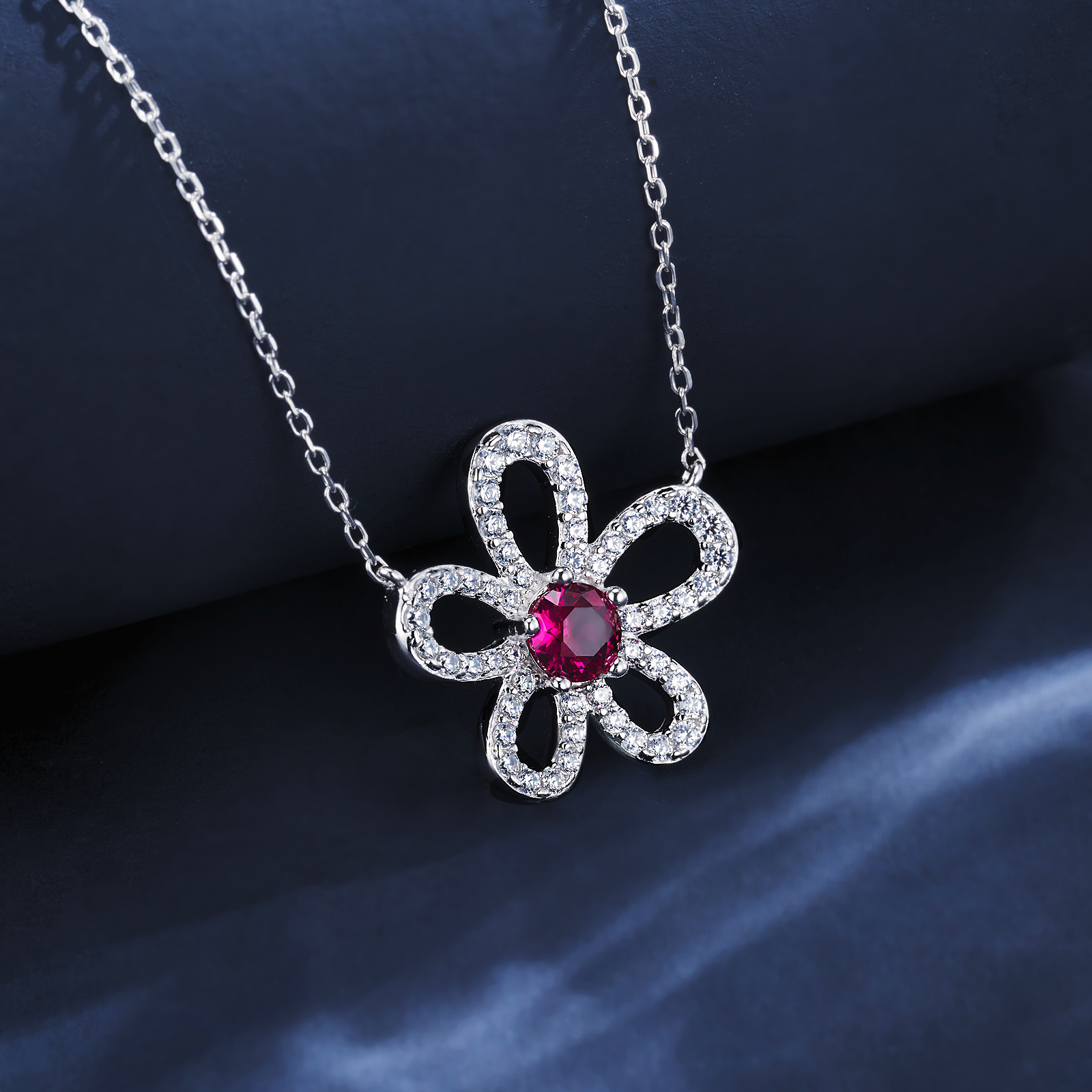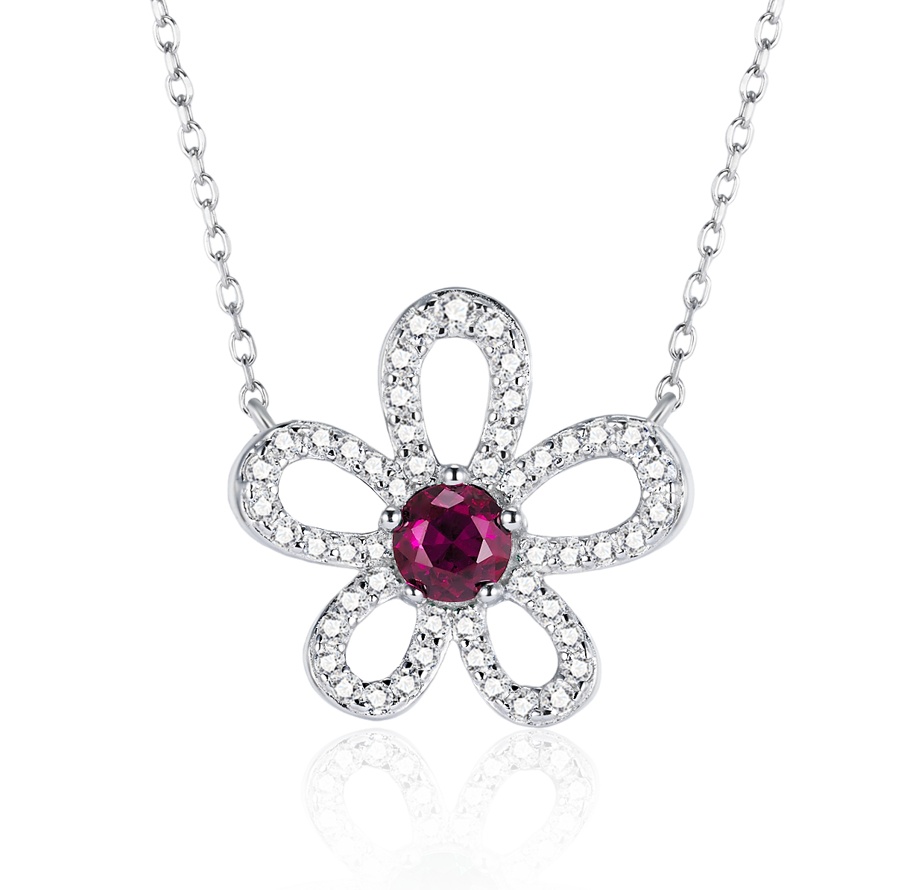 925 银培育红宝花朵项链(ZHF-P3166-2)