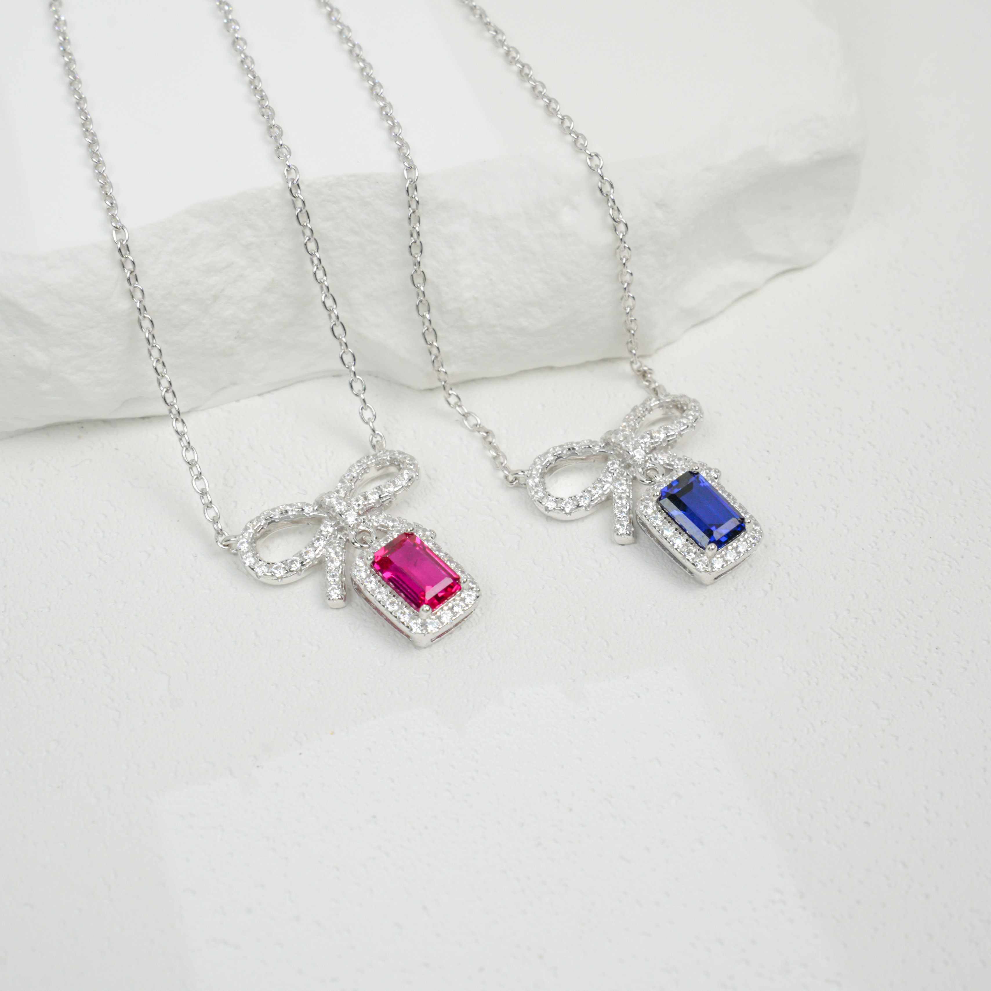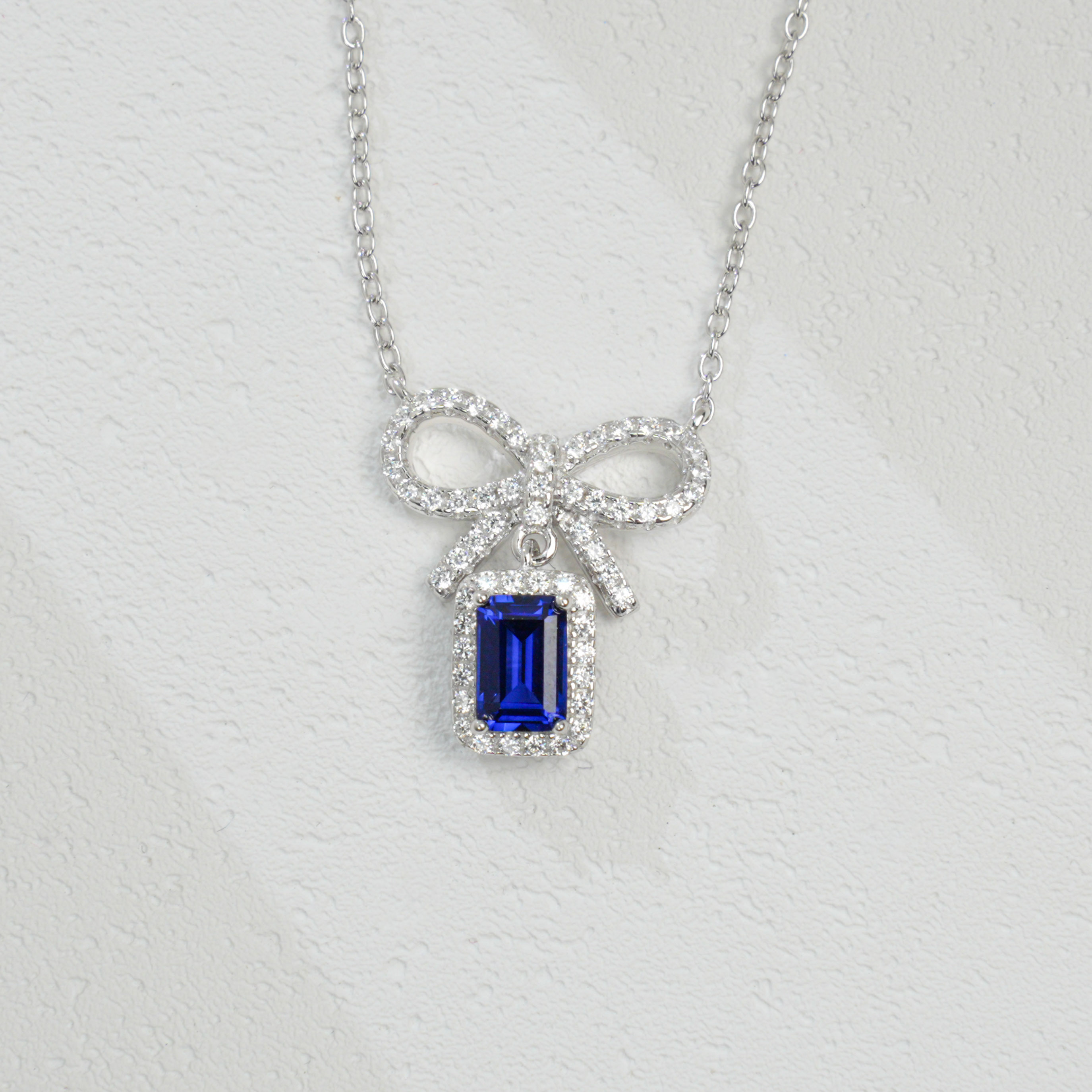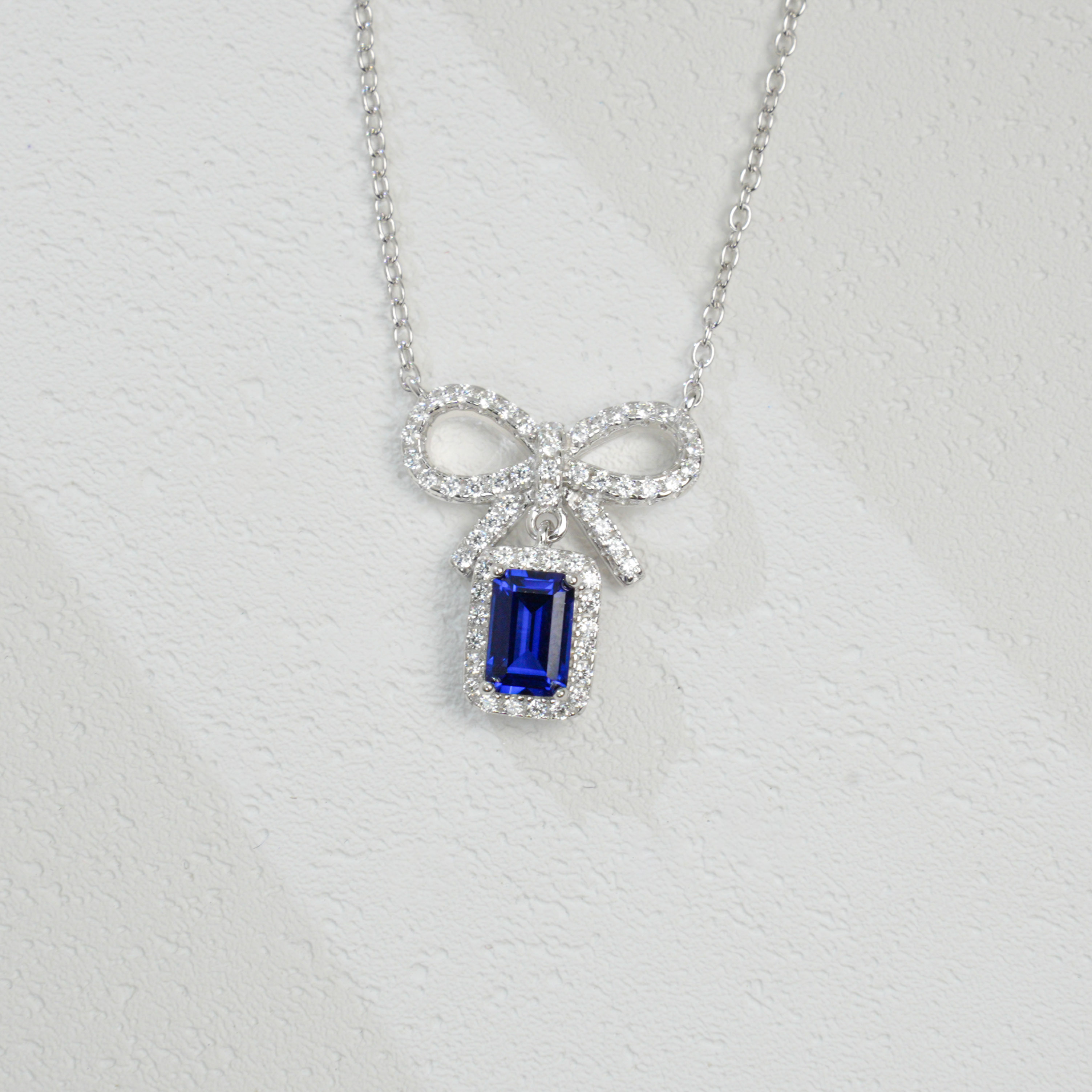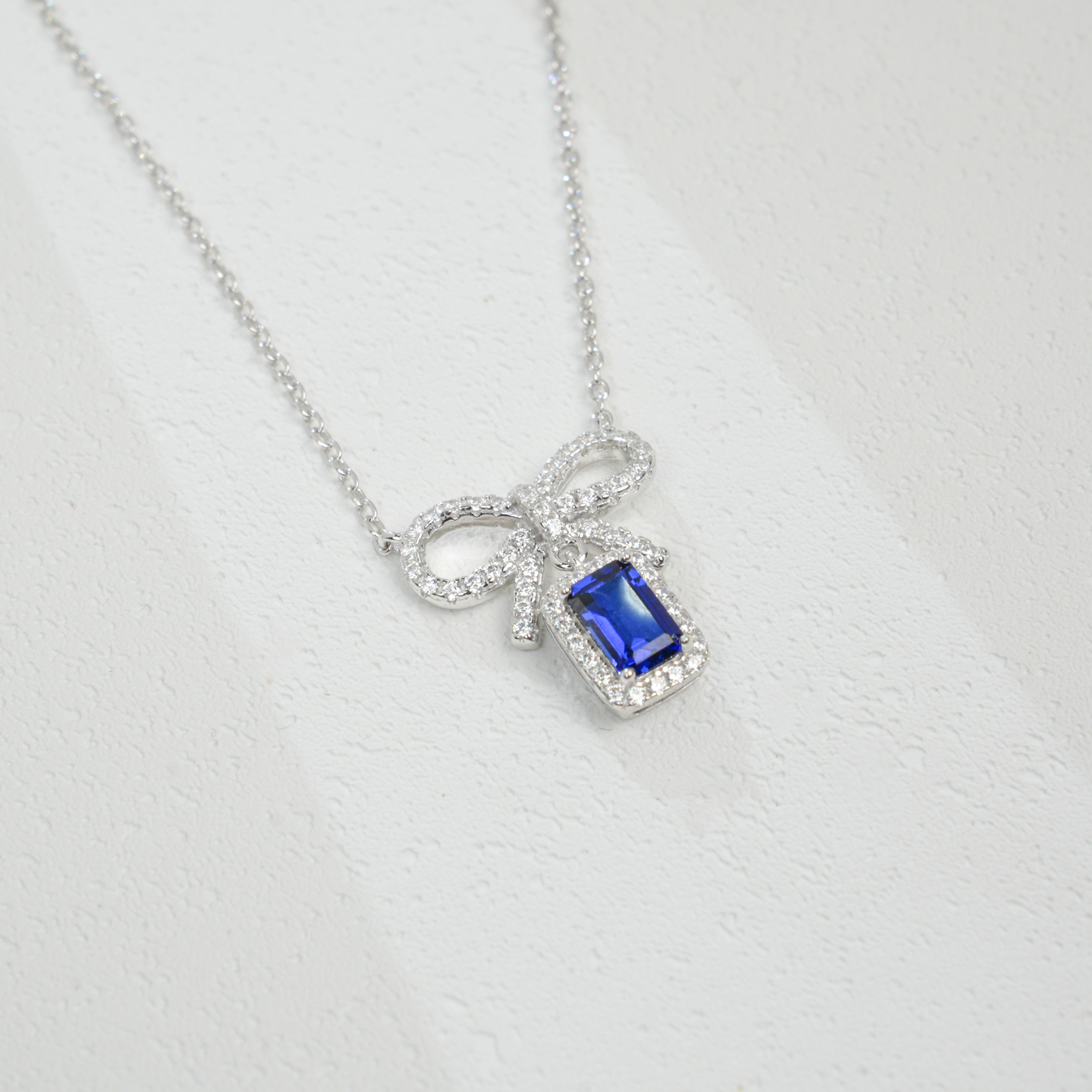 925银培育蓝宝蝴蝶结项链|浪漫轻奢 一抹深邃蓝的心动
