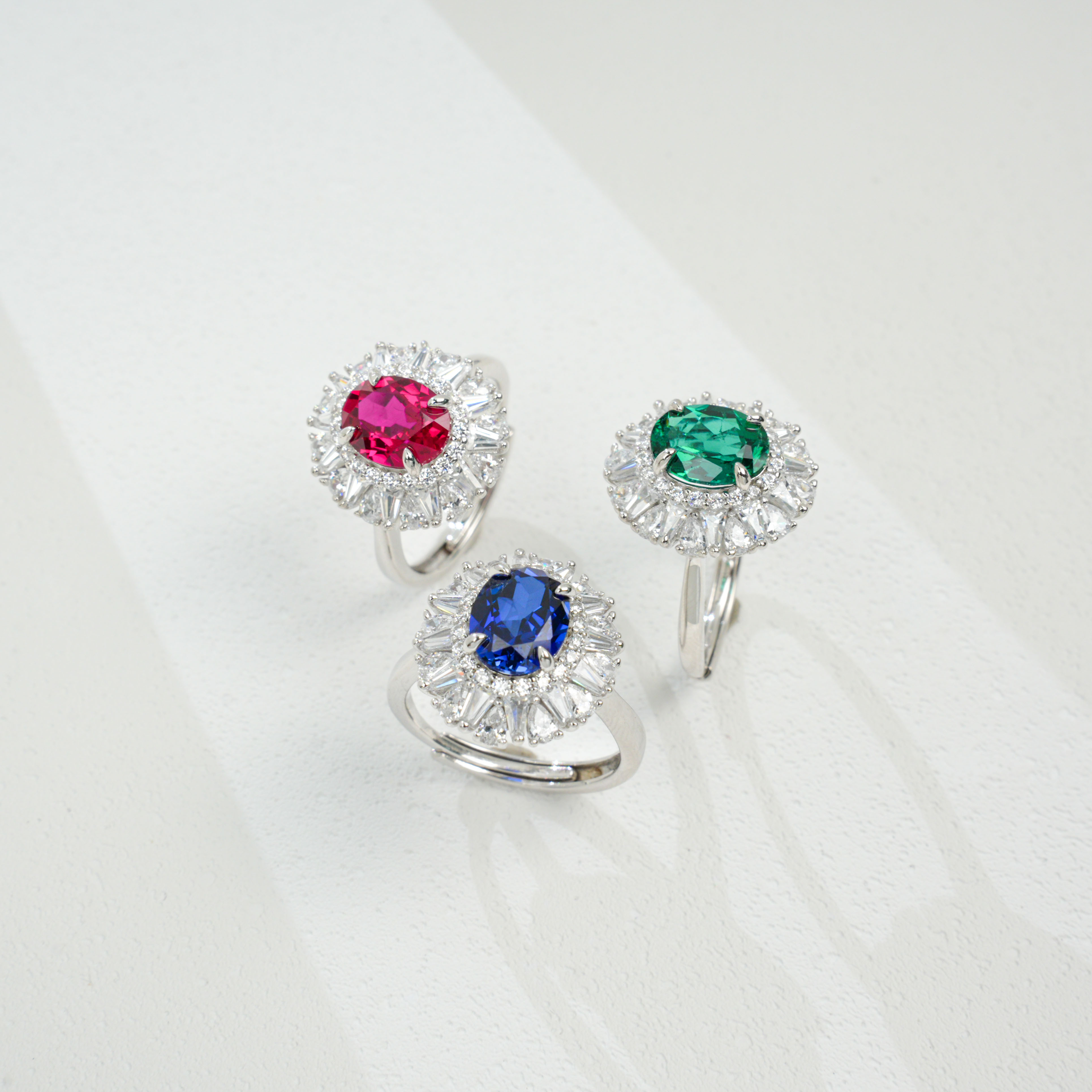 Material & Craftsmanship - Material: 925 silver, pure and delicate, ensuring good skin compatibility and comfort for extended wear. - Main Stone: Cultivated sapphire with a deep, rich color, similar to natural sapphire in optical and physical properties. - Imitation Diamonds: Multi-shaped zircon embedded around the main stone, adding a bright and luxurious visual impact.