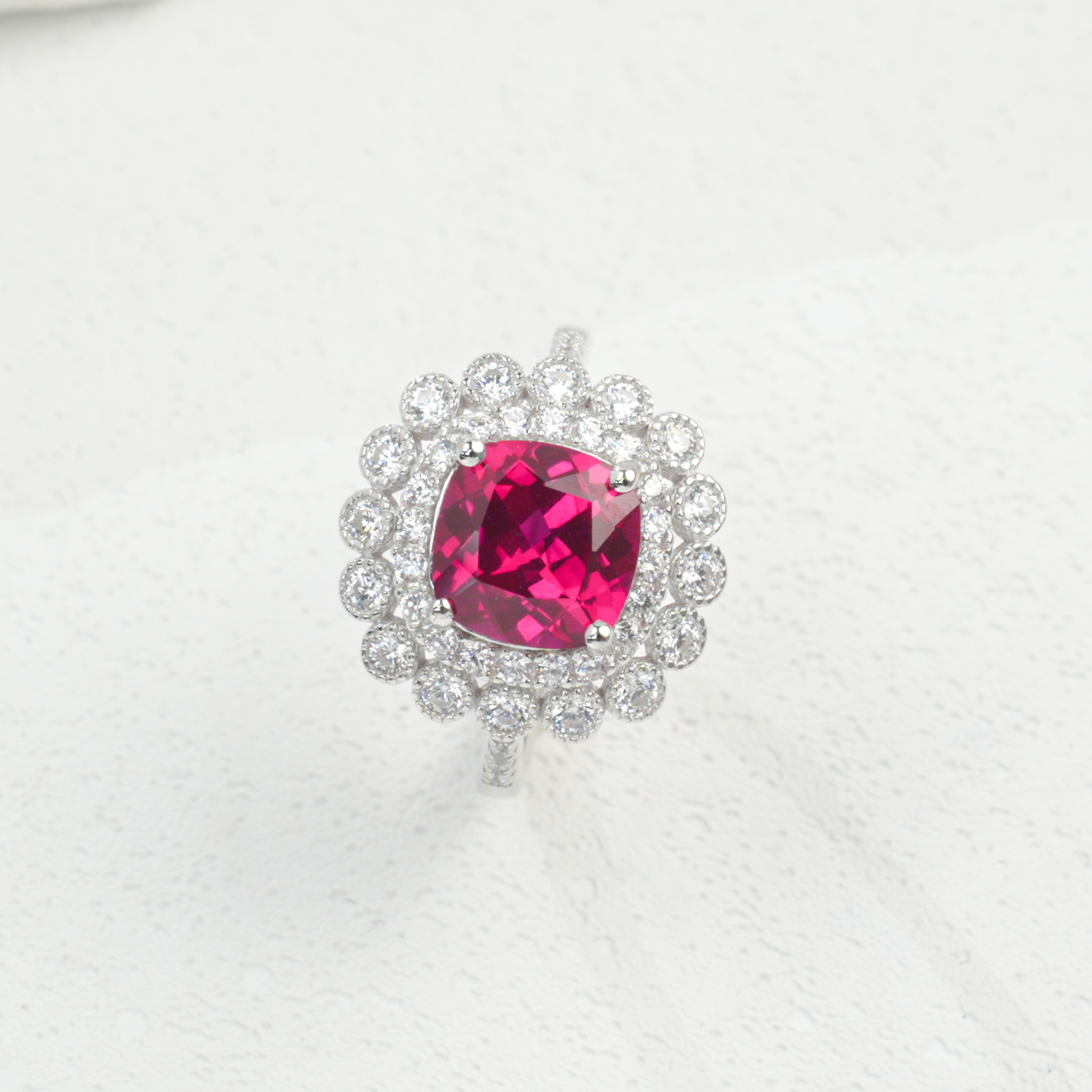 925 银培育红宝戒指 | 复古宫廷风,绽放华贵魅力
