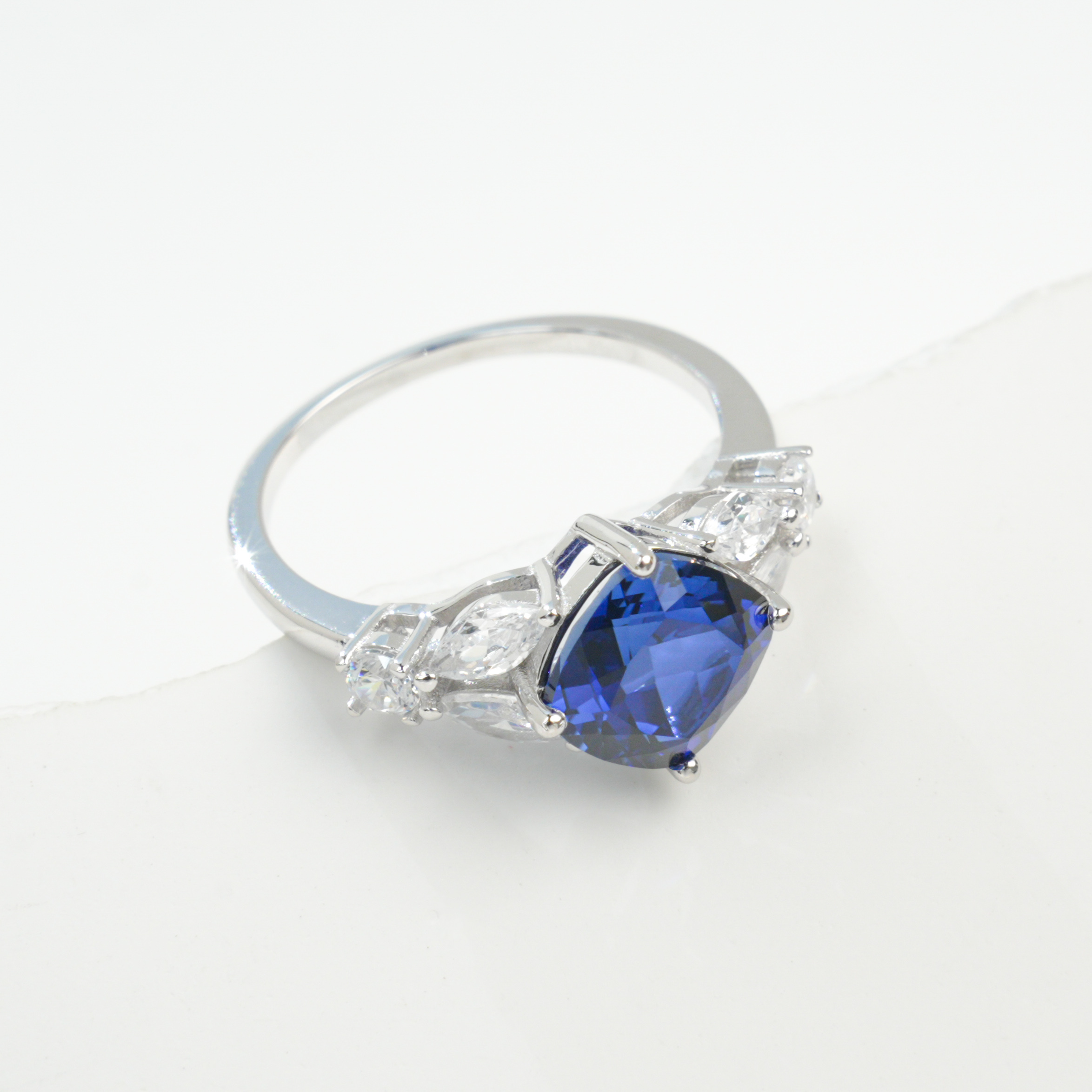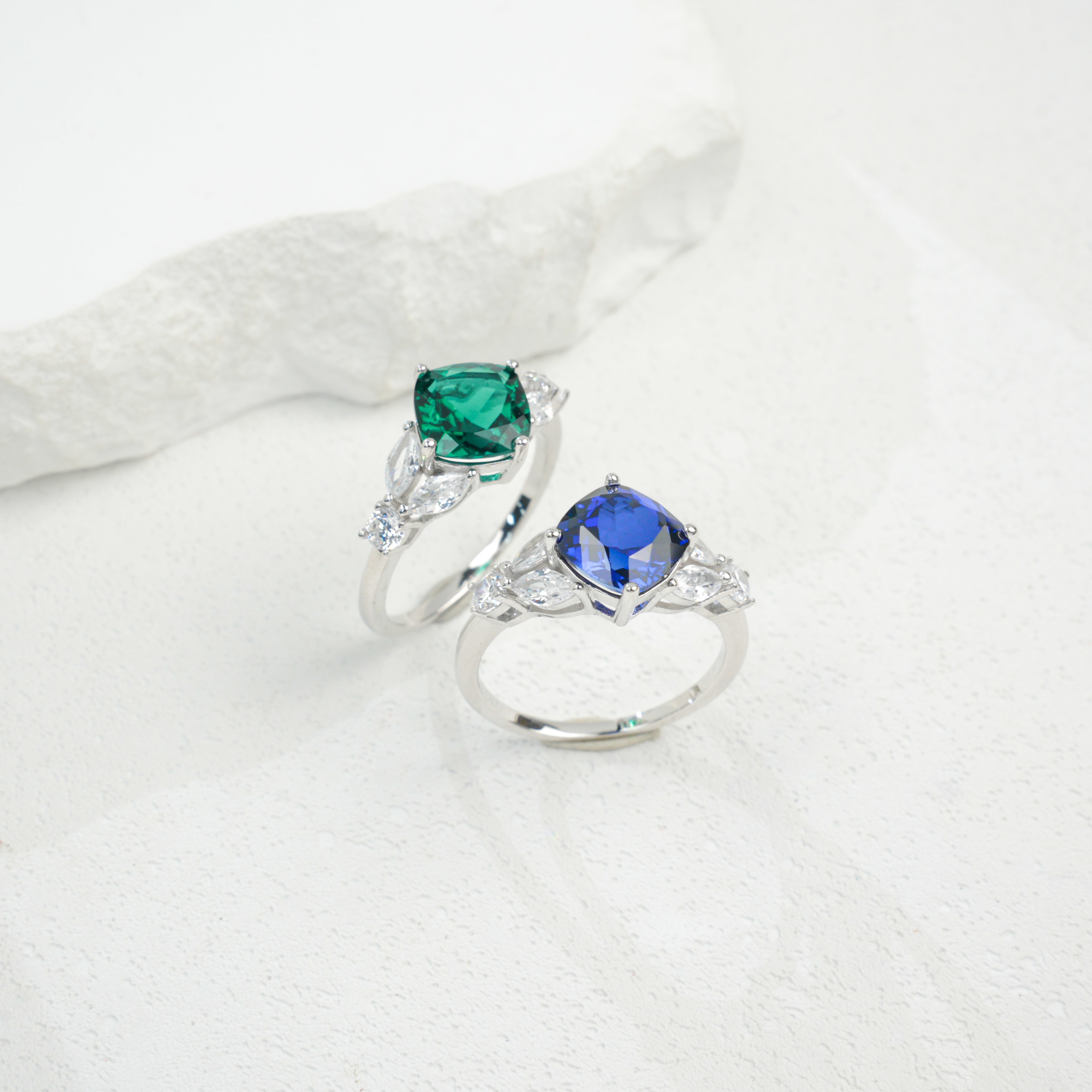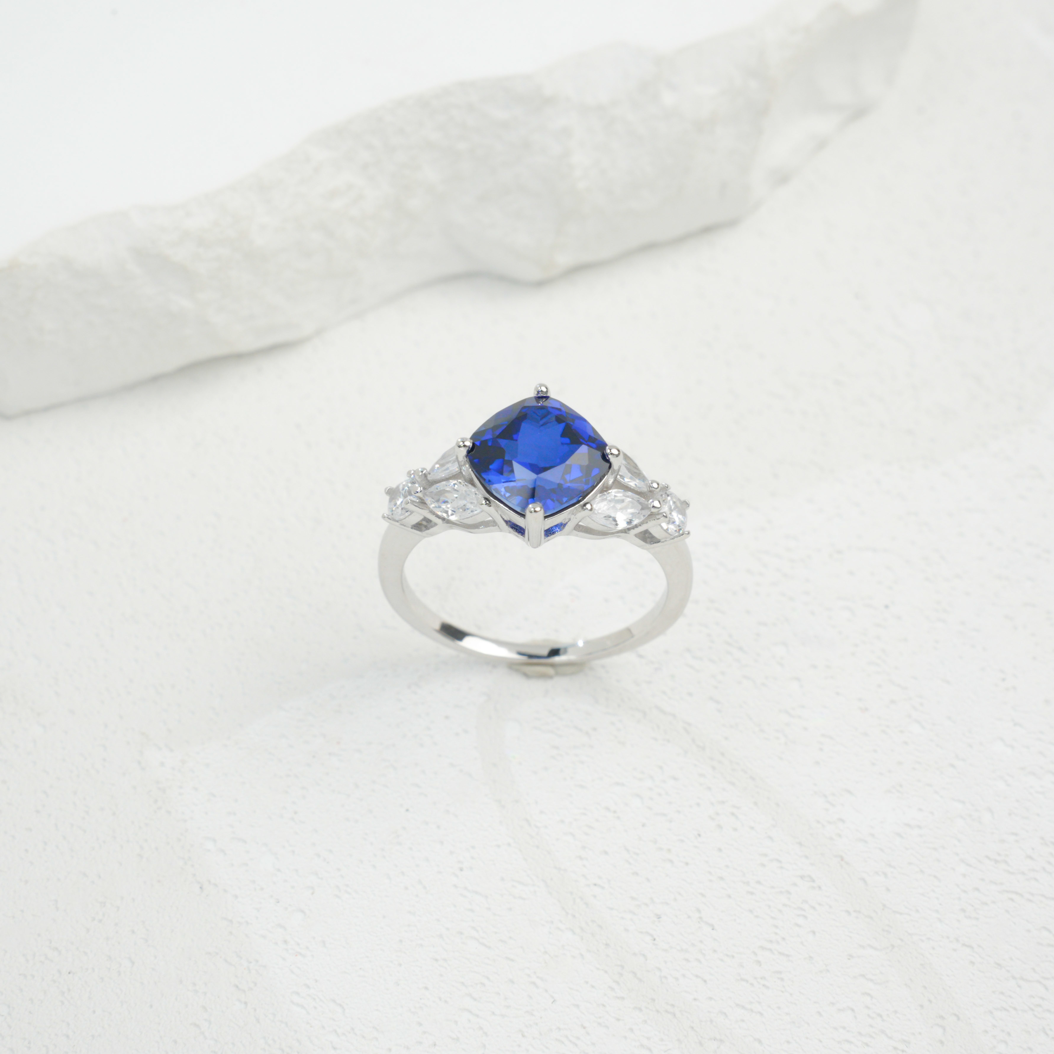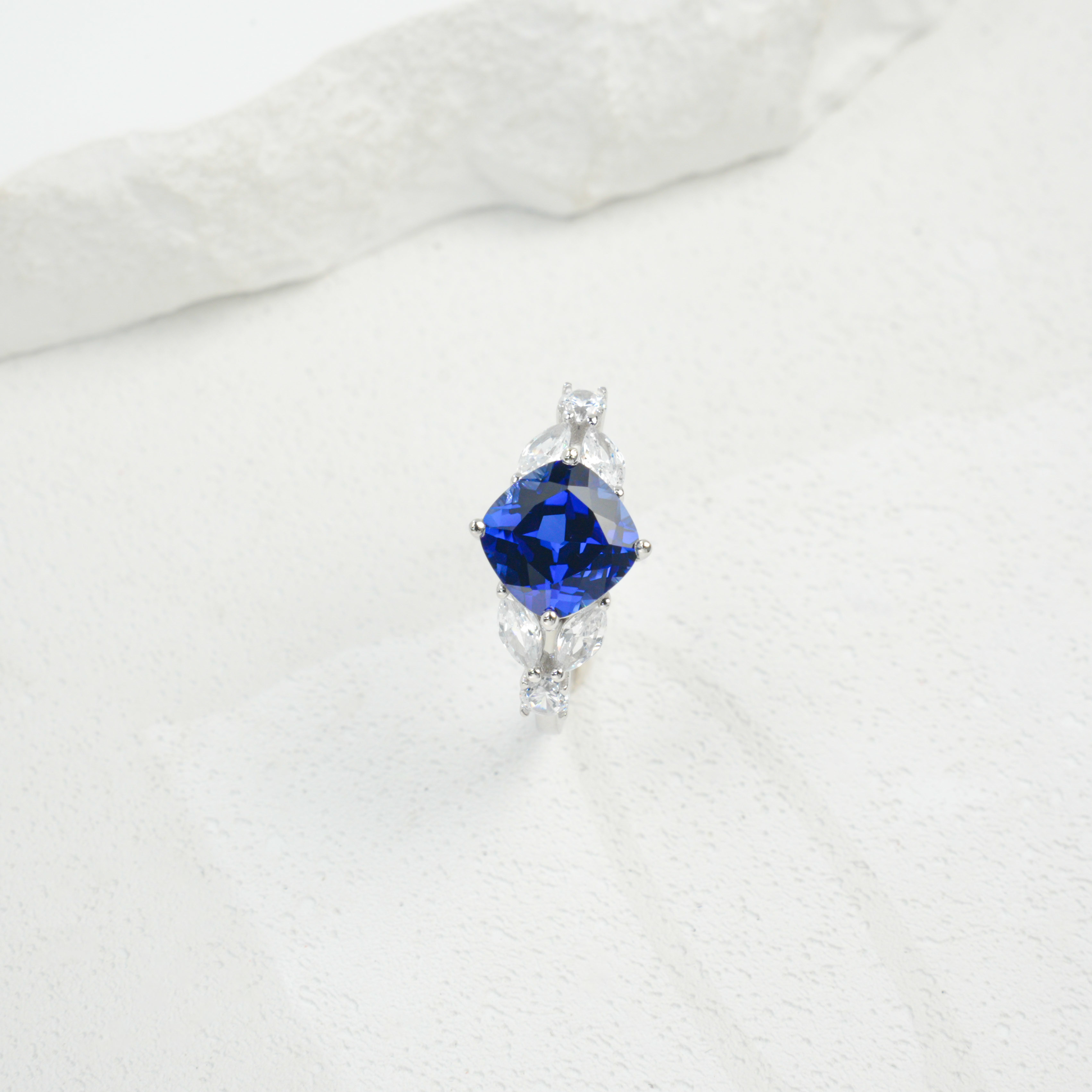 925银培育蓝宝公主方戒指|8×8MM枕形蓝宝 指尖的轻奢艺术杰作