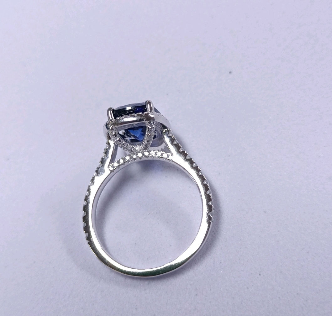 -宝石王者:主石为8×10MM/3.82CT培育蓝宝石,采用枕形切割,色泽浓郁如皇家蓝调,火彩饱满且富有层次感,大克拉尺寸带来强烈视觉冲击,复刻天然蓝宝石的收藏级质感,每一次佩戴都彰显奢华气场。