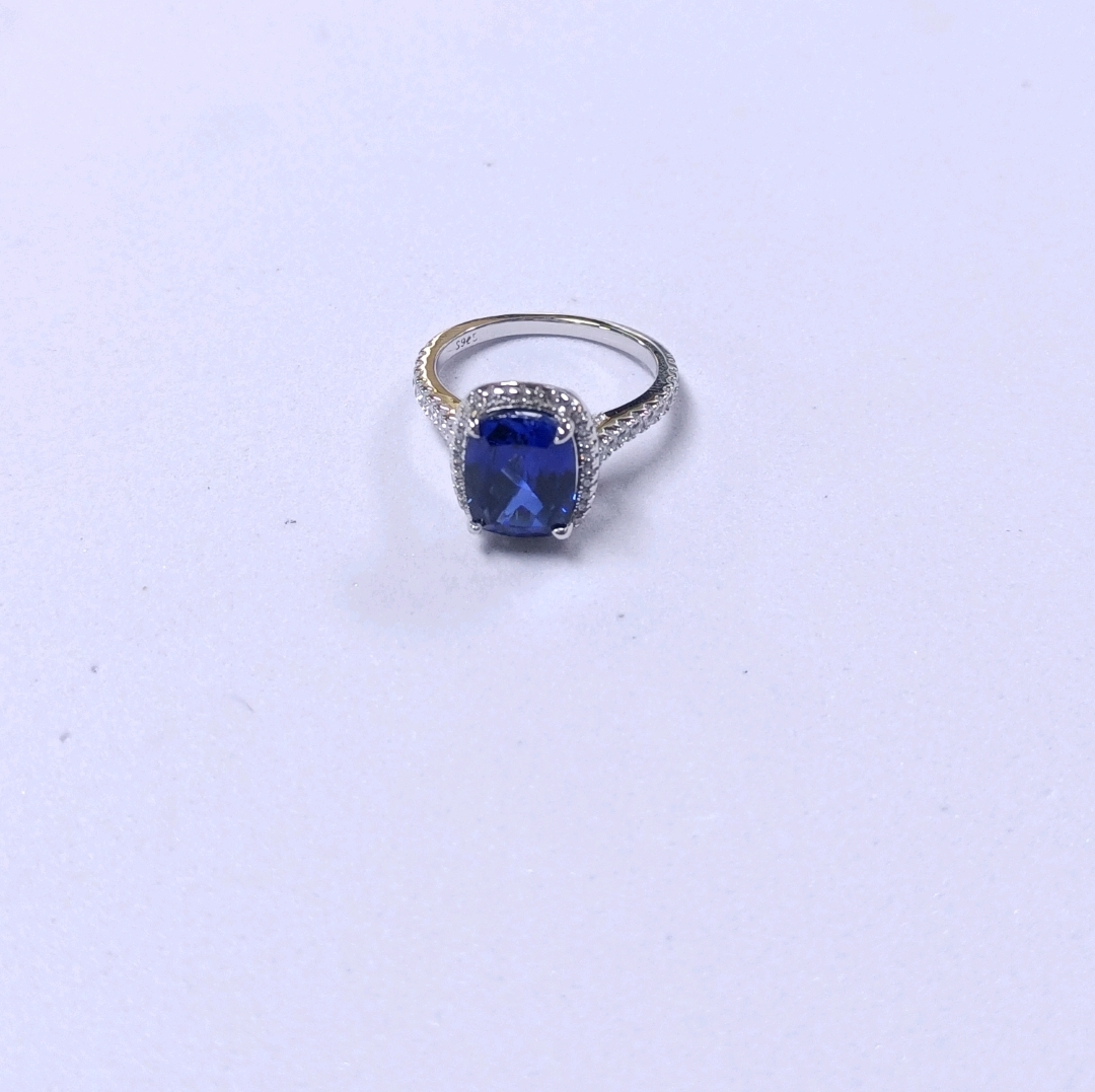 # 925银培育蓝宝枕形戒指|8×10MM/3.82CT大克拉蓝宝 指尖的奢华焦点