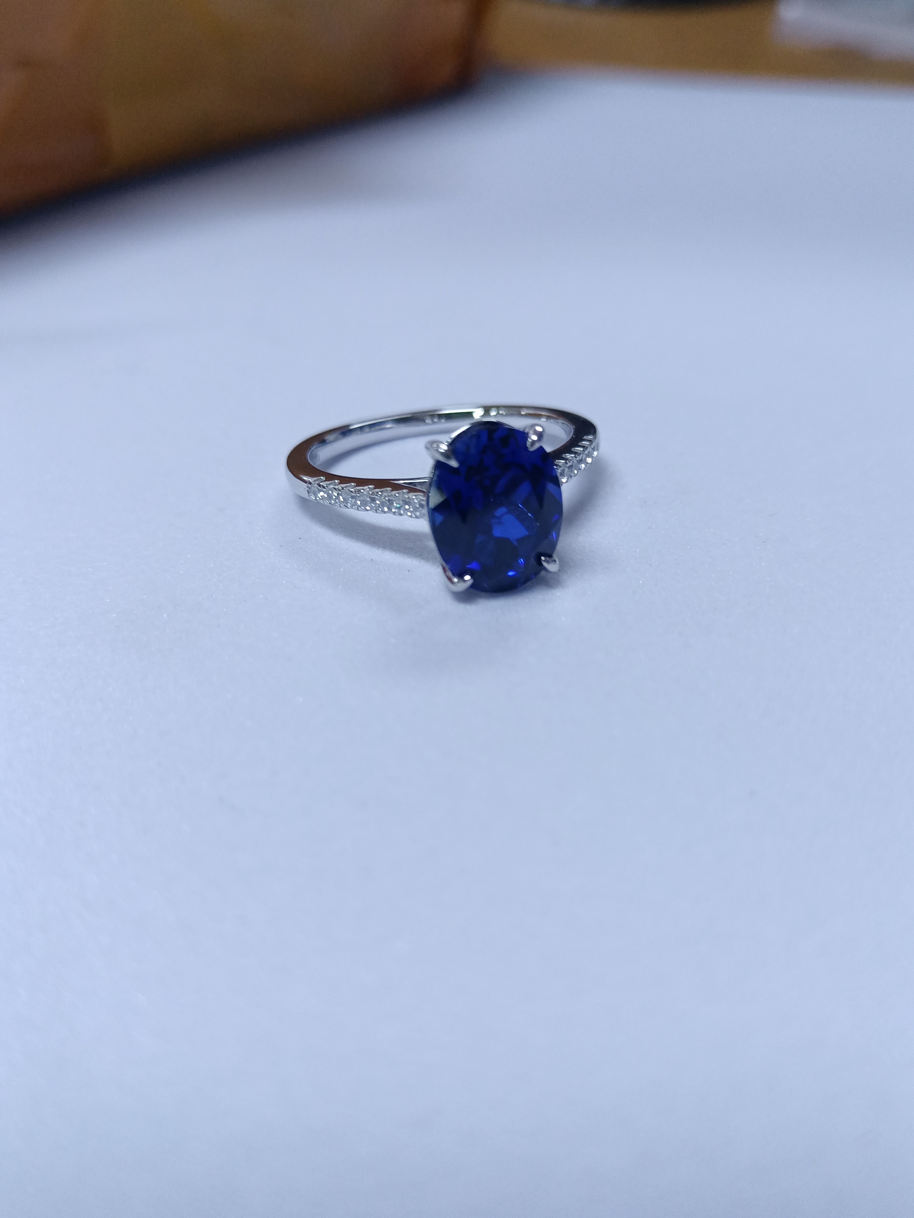 宝石魅力:主石为 8×10MM/3.38CT 培育蓝宝石,椭圆切割色泽浓郁深邃,火彩饱满绚烂,大克拉尺寸带来强烈视觉冲击,复刻天然蓝宝石的高级质感,每一次佩戴都尽显轻奢气场。