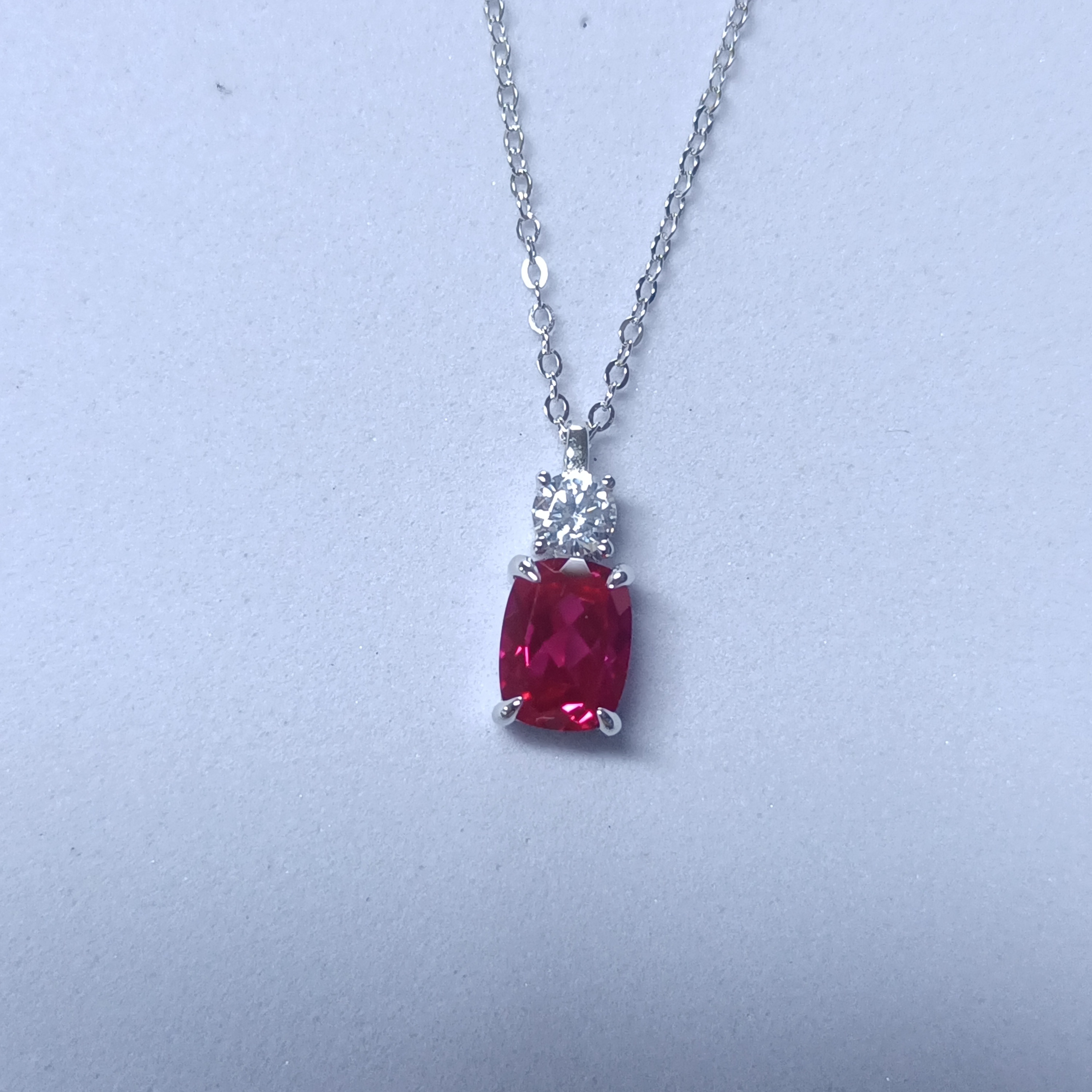方形红宝搭配围钻设计,简约大气,适合各种正式场合佩戴。