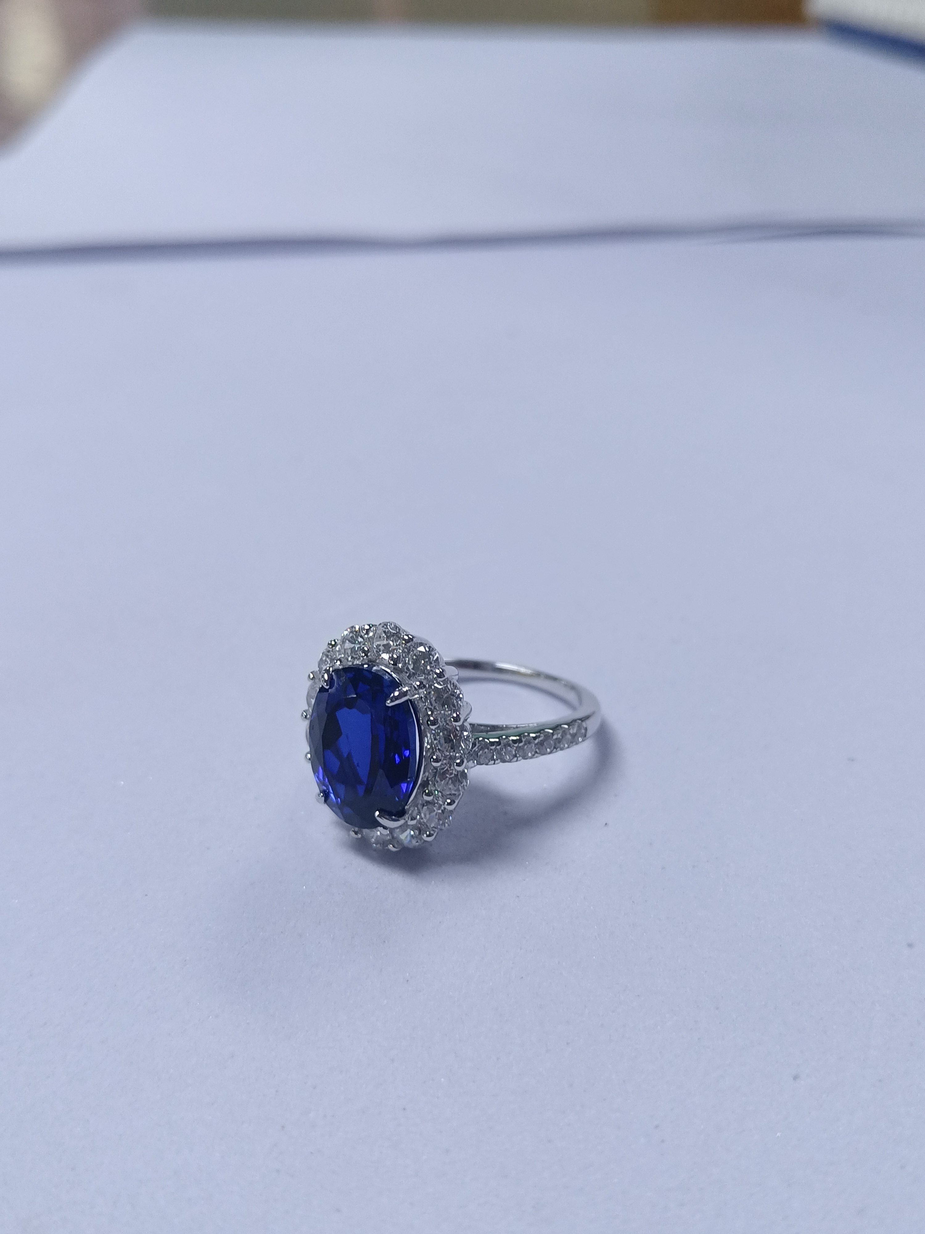 这款 925 银培育蓝宝椭圆满钻围镶戒指,以大克拉宝石和满钻设计,重新定义轻奢珠宝的奢华体验,是收藏级质感与日常佩戴的完美平衡,自留彰显品味高度,送礼传递重磅心意。