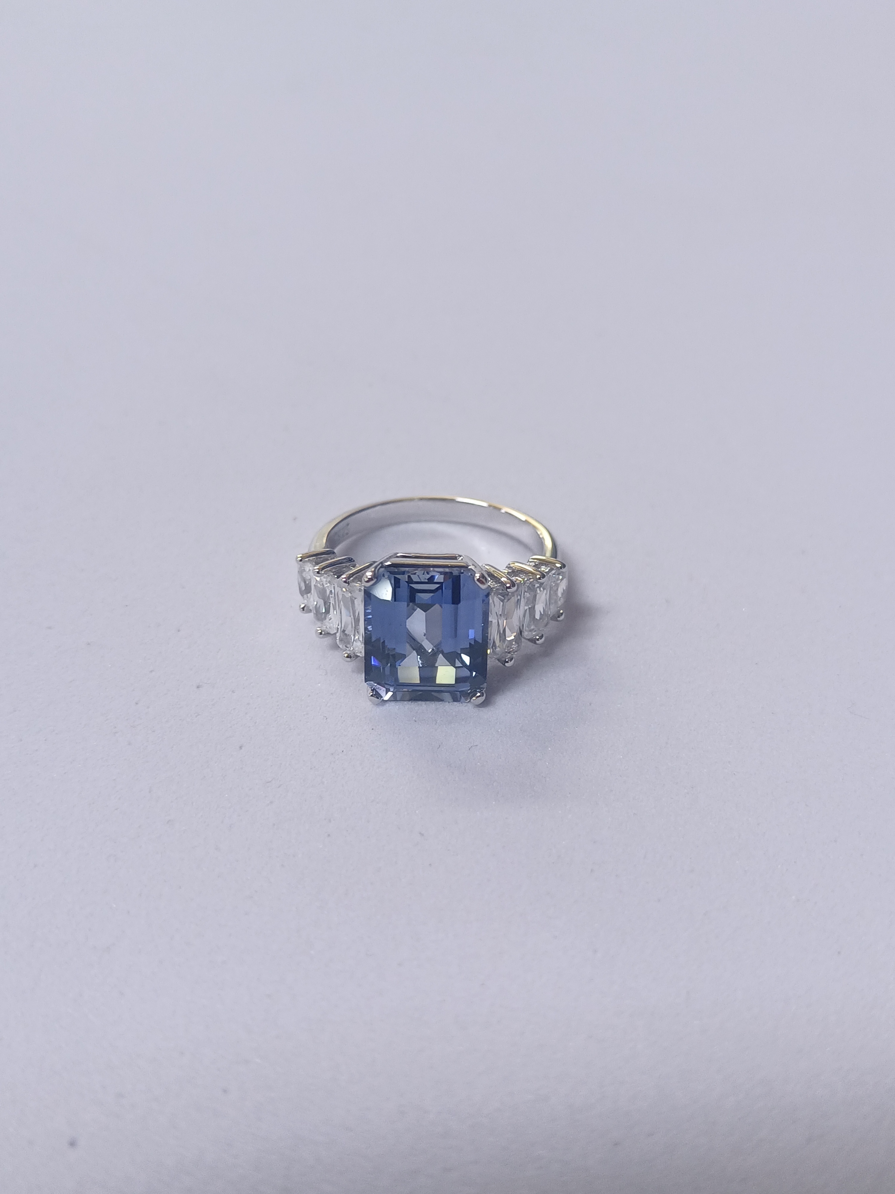 设计巧思:采用侧镶长方钻设计,将祖母绿切割蓝宝的几何美学与钻饰的璀璨光芒融合,小众设计却极具辨识度,是指尖的吸睛焦点。