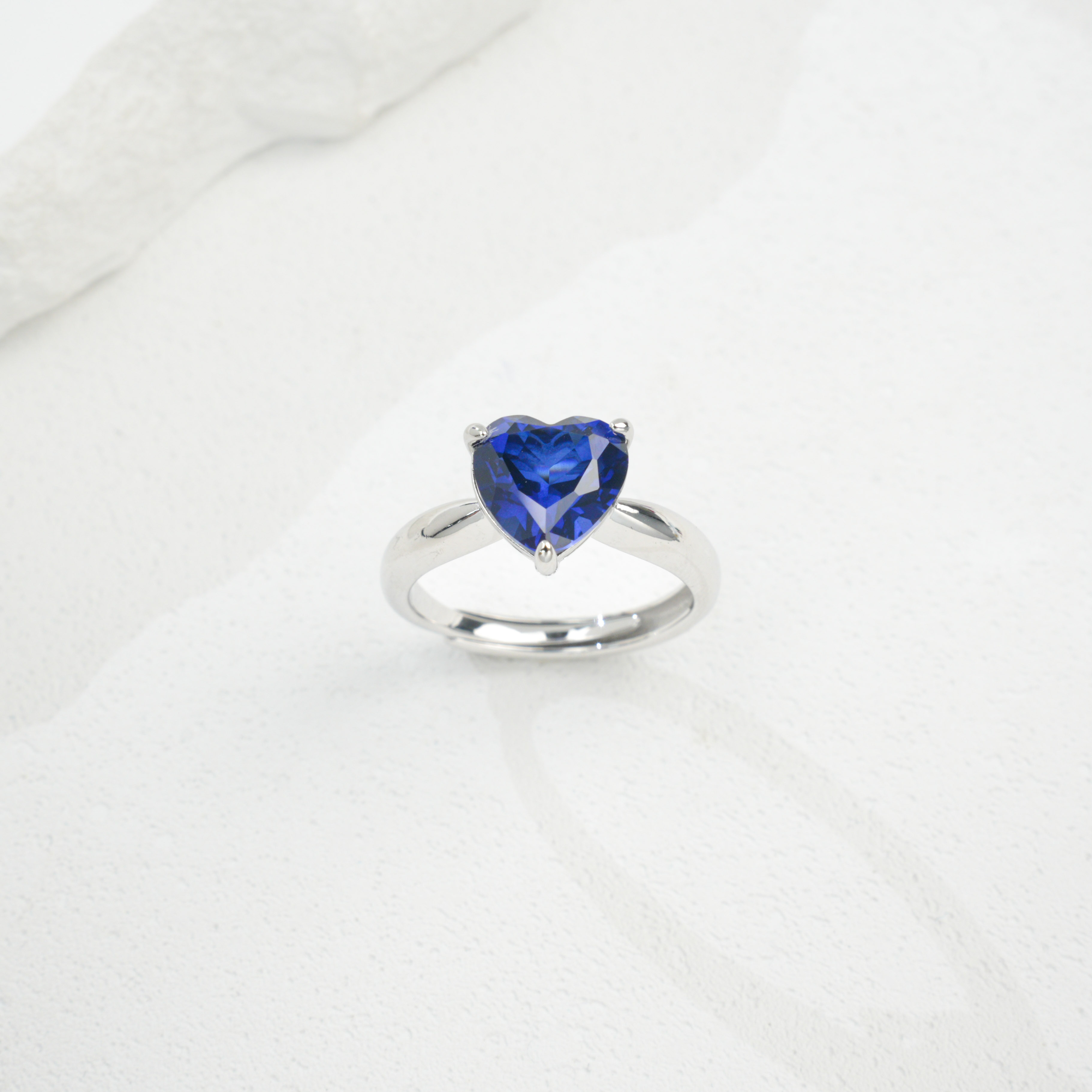 925 银培育蓝宝心形戒指|3.31CT 浪漫宝石 指尖的纯粹爱意