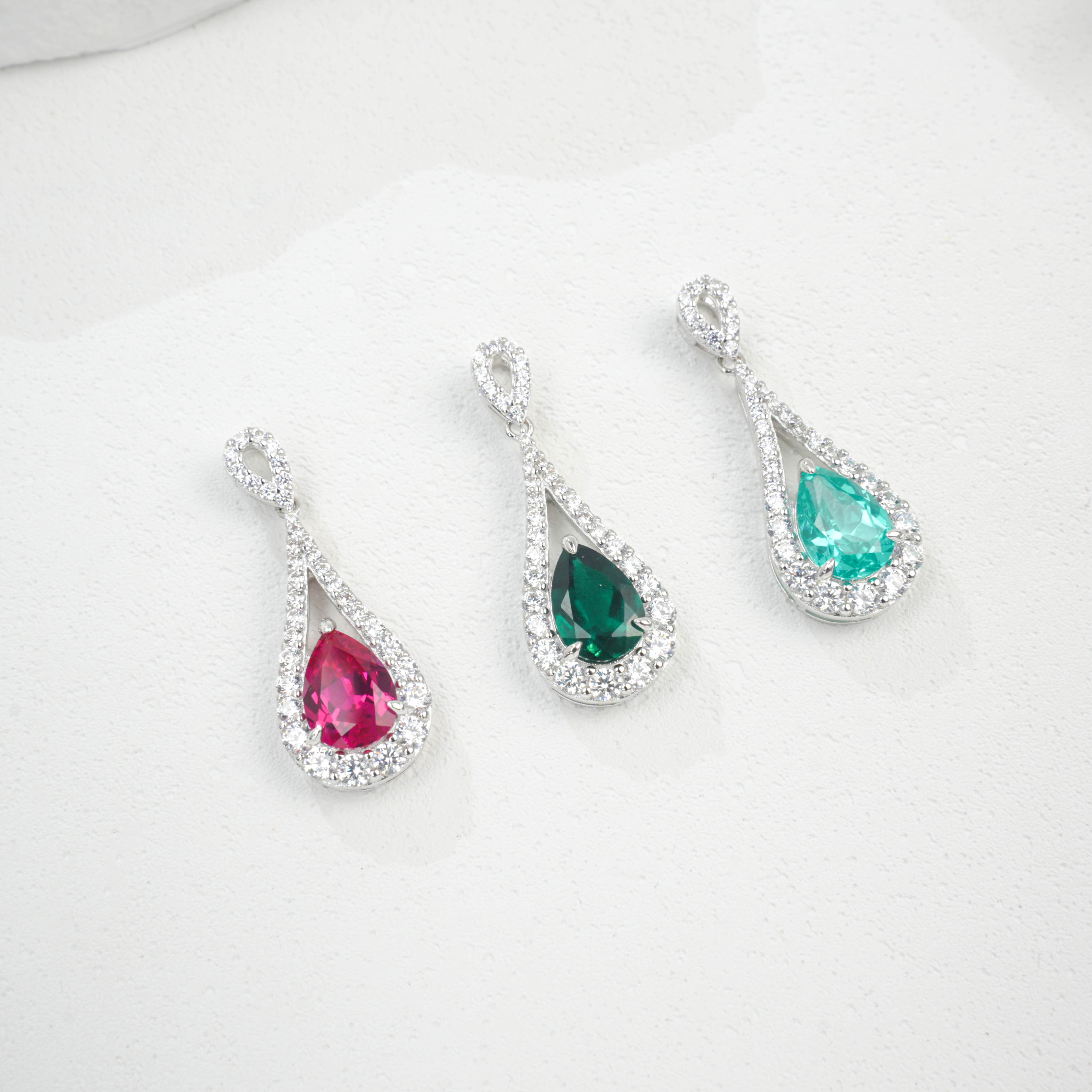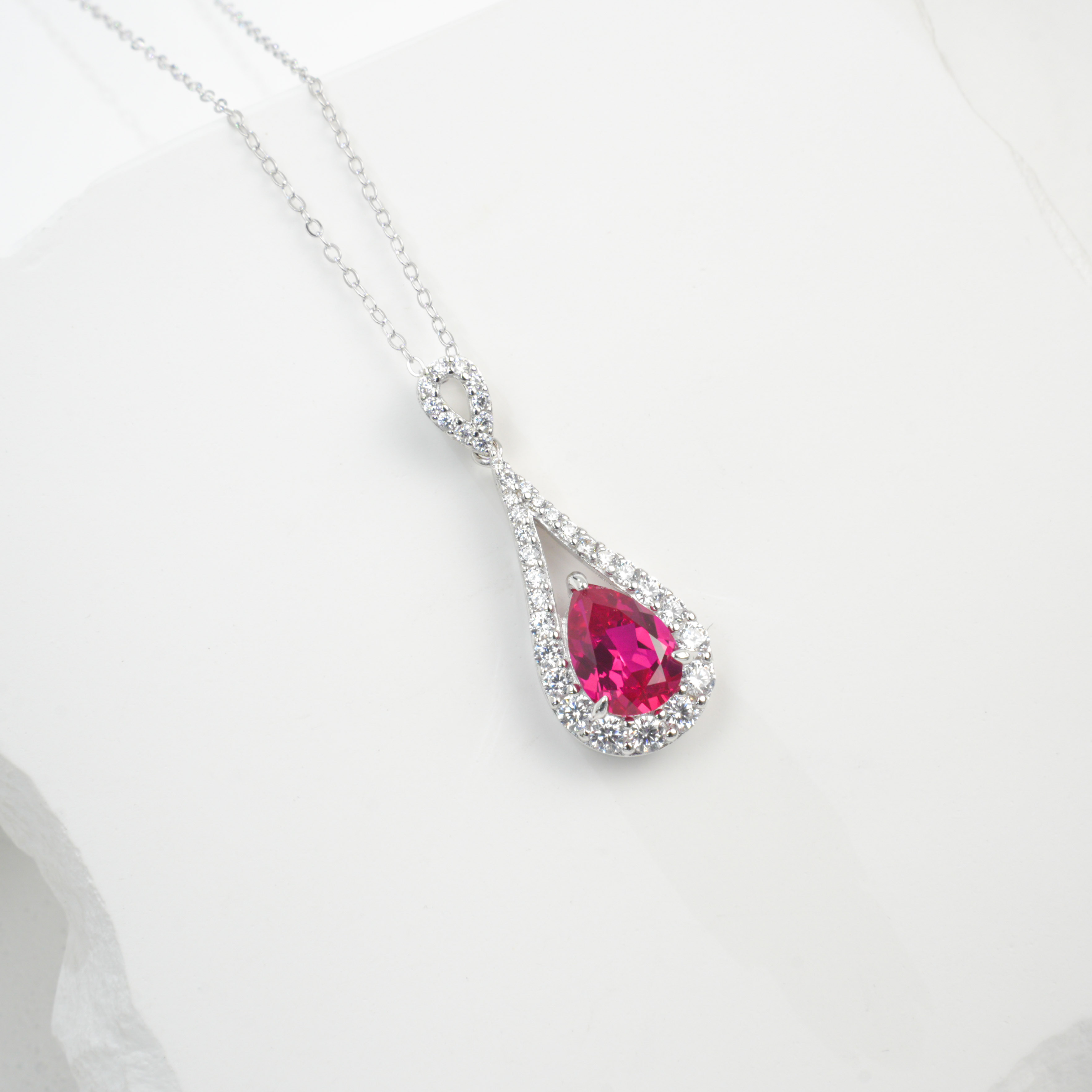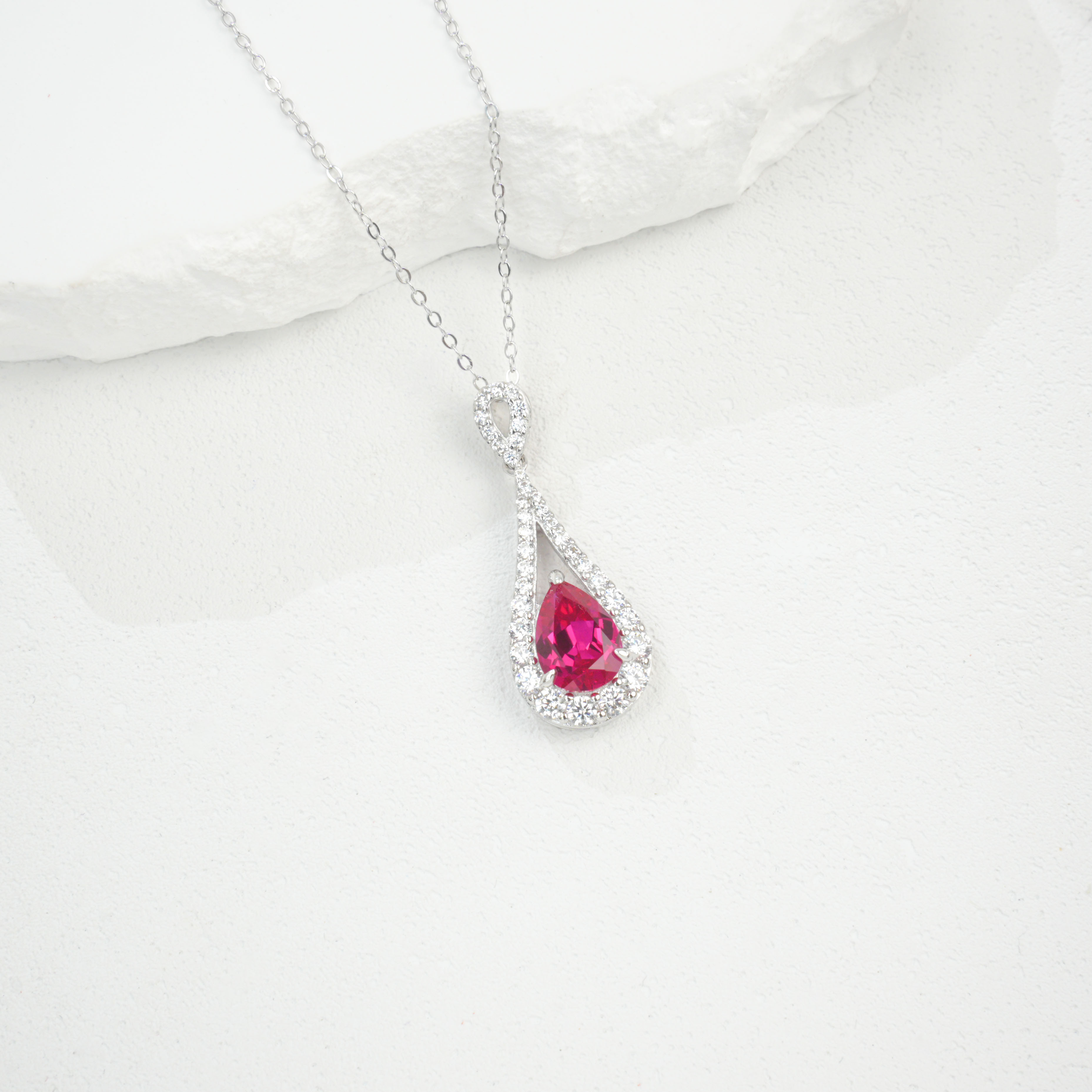 S925 银培育红宝水滴项链(ZHFP1758R)