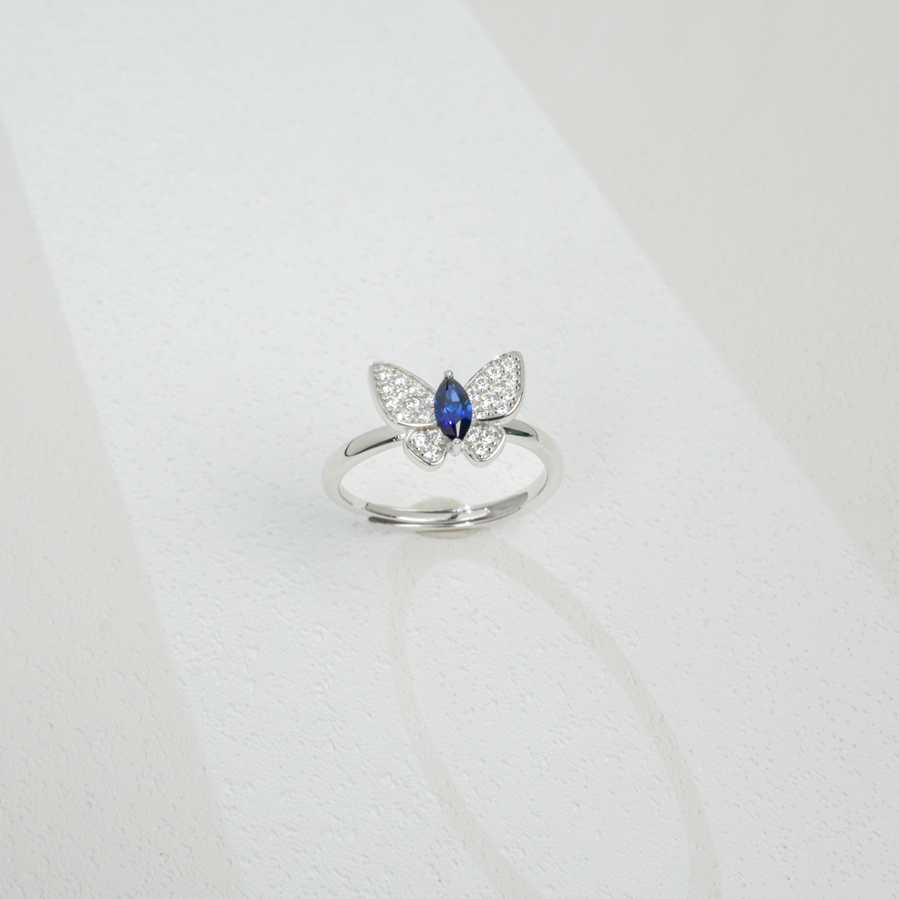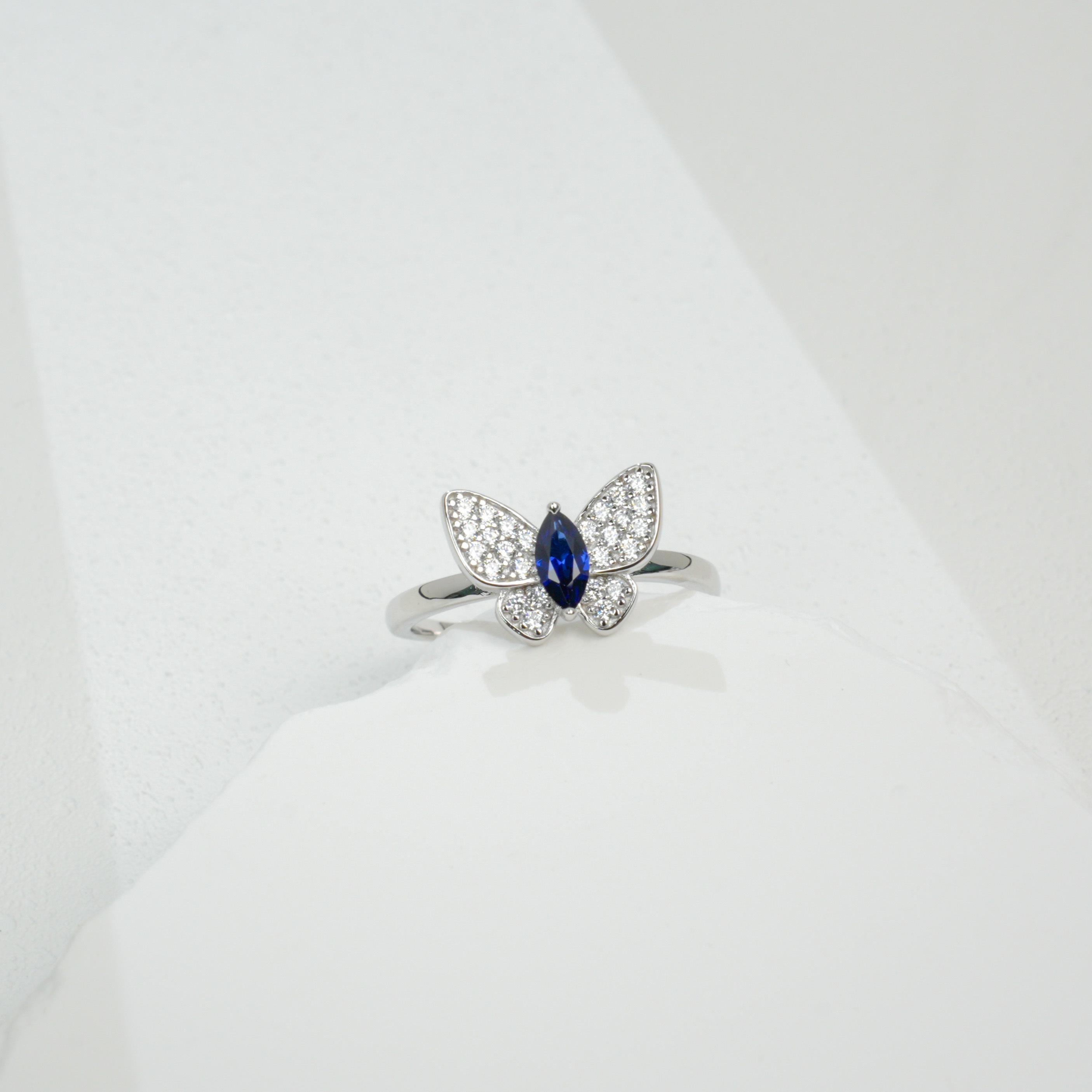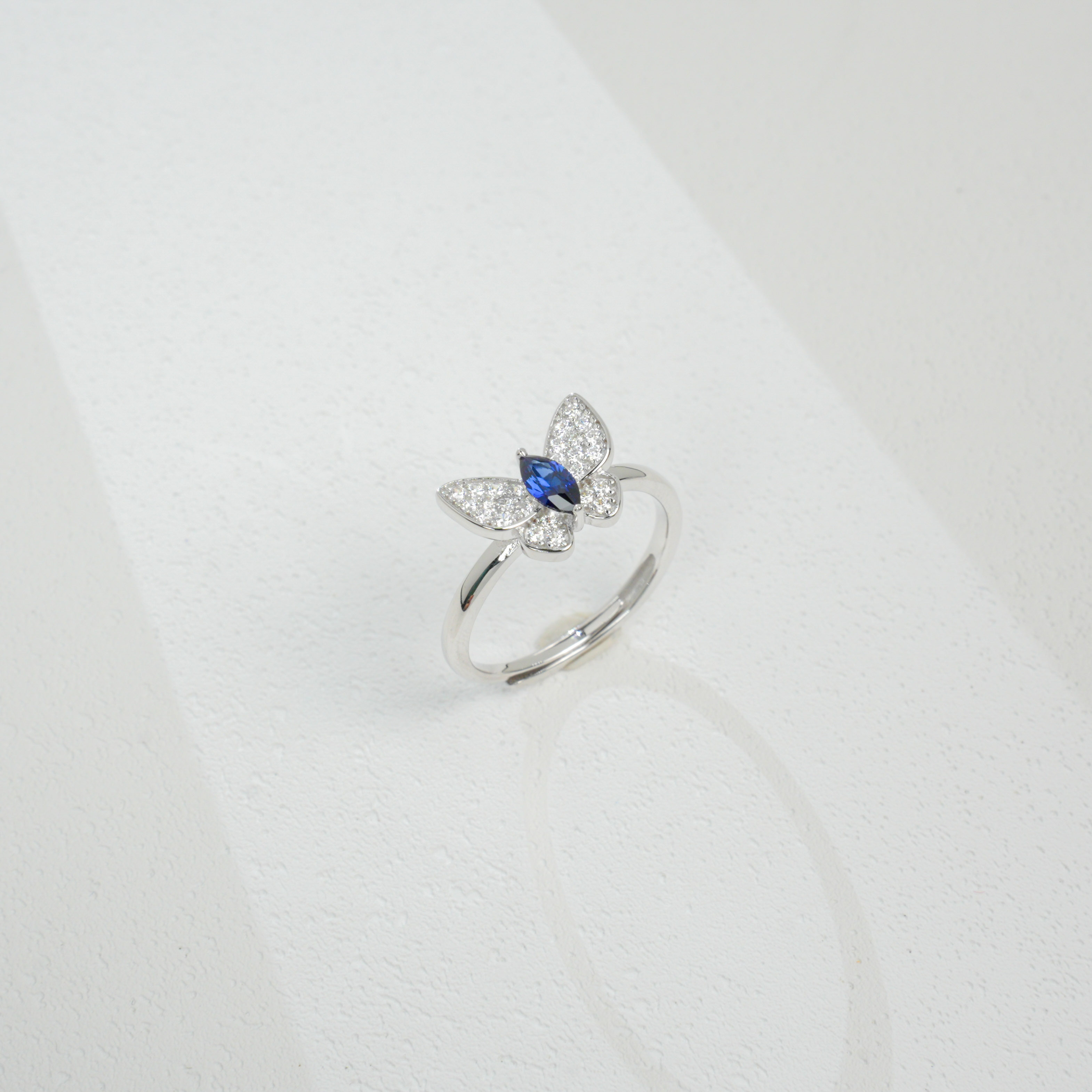 这款 925 银培育蓝宝蝴蝶戒指,以灵动设计和精致宝石,诠释日常珠宝的浪漫体验,是日常佩戴与展现风格的精致之选。